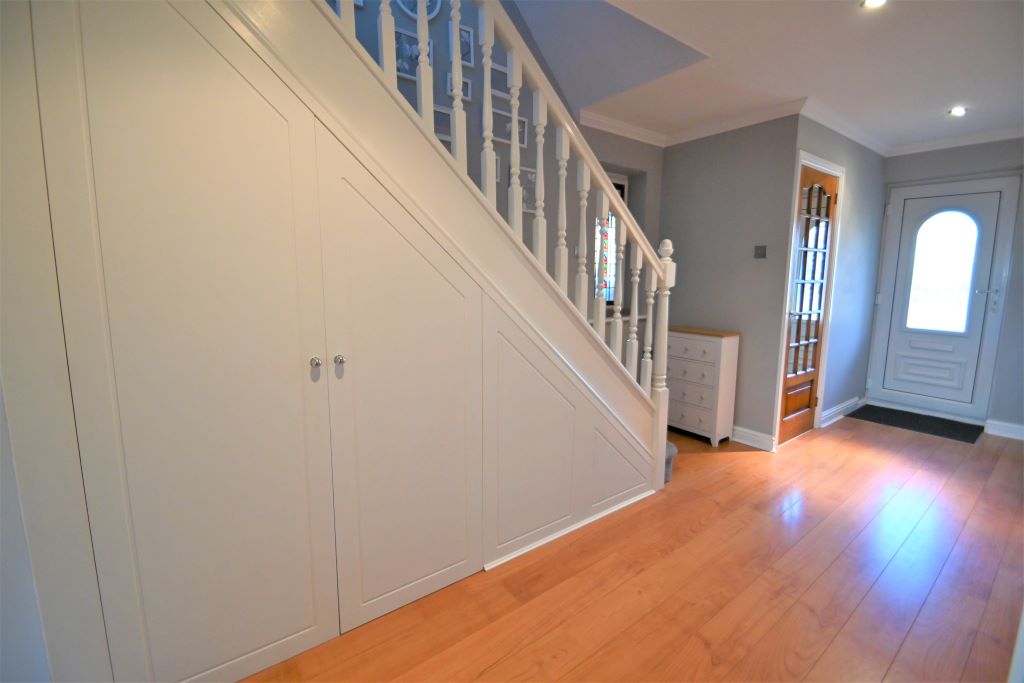 A welcoming entrance hallway leads to the 2 reception rooms, kitchen/diner, W/C and stairs to the first floor accommodation. The under stairs storage offers a versatile space to store coats and shoes. Finished with side aspect window, wood effect laminate flooring, central heating radiator and spot lighting.