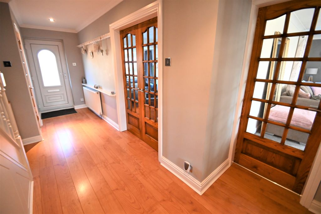 Double doors offer access from the entrance hallway into the bay fronted multifunctional room currently used as a study but could be used as a second lounge, playroom. Benefitting from floor to ceiling built in storage cupboards, a side aspect window, wood effect laminate flooring continued from the hallway, gas central heating radiators and a single pendant light fitting.