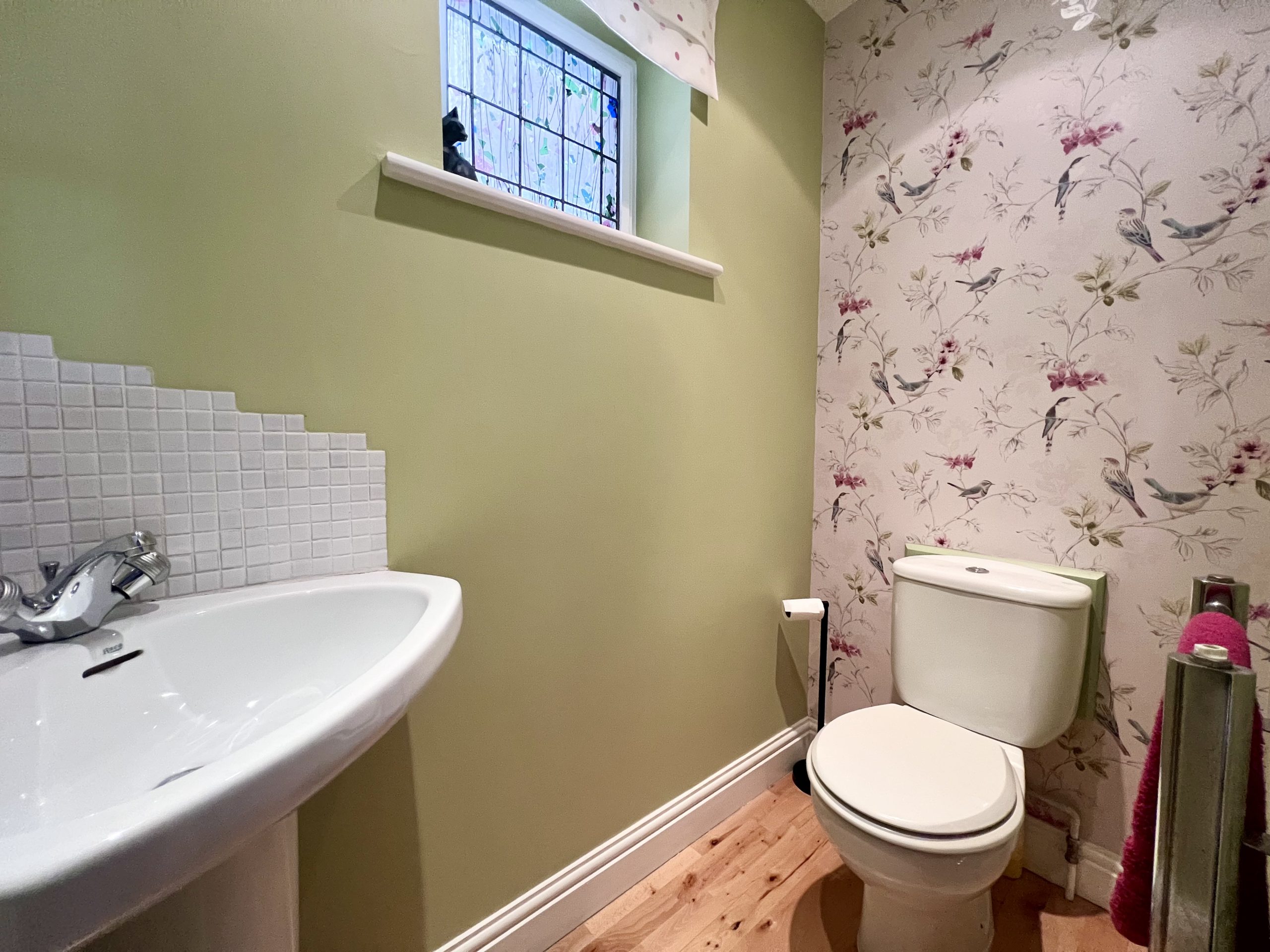 The property benefits from a downstairs W/C with handbasin, side aspect window, pendant light fitting, central heating radiator and finished with wood effect laminate flooring.