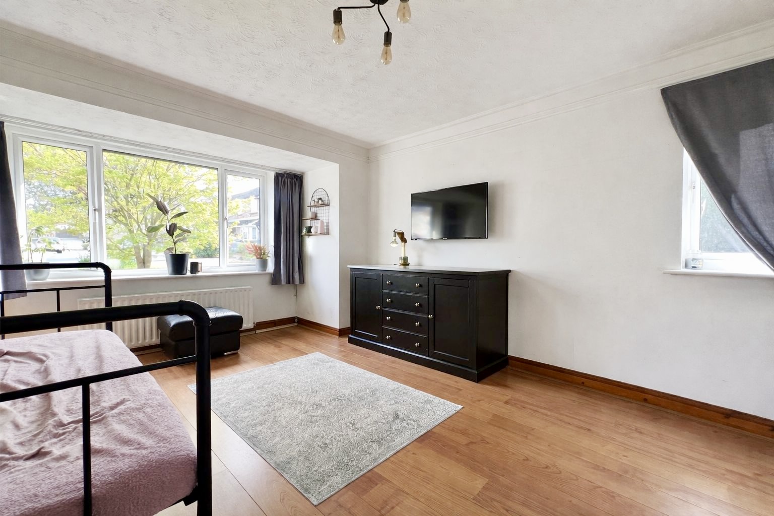 The front aspect master bedroom offers plenty of space for relaxing. Finished with grey carpet, single pendant light fitting and central heating radiator.