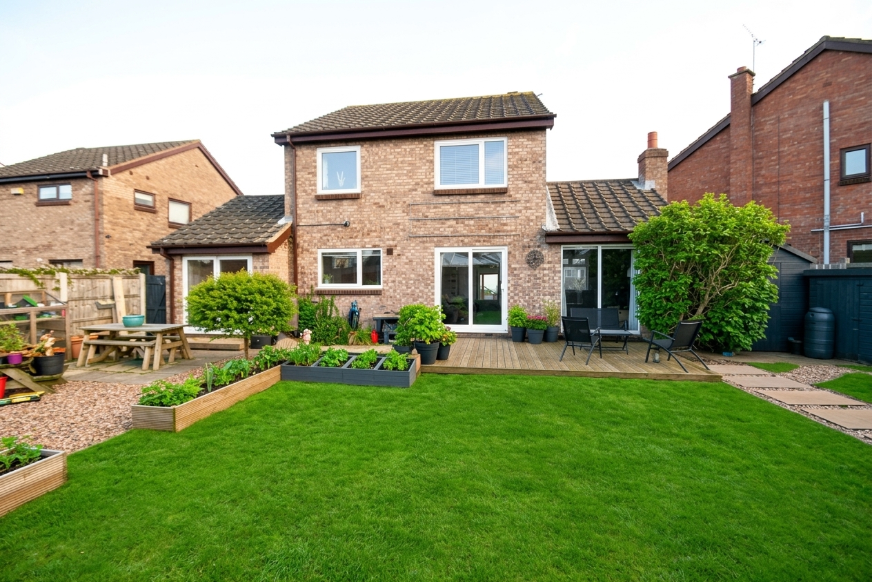The property boasts a generous corner plot with a large block paved driveway providing parking for several vehicles. The front garden has a grassed area with mature borders and trees. A car port offers shelter for a vehicle and there is side access to the rear garden which is a huge selling point for this already impressive family home. Mostly south facing with several areas to relax and enjoy this garden including a decking platform, lawn, decorative stone area, wildflower garden and a spacious outdoor pergola. Mature borders and trees add the finishing touches to this outdoor space.