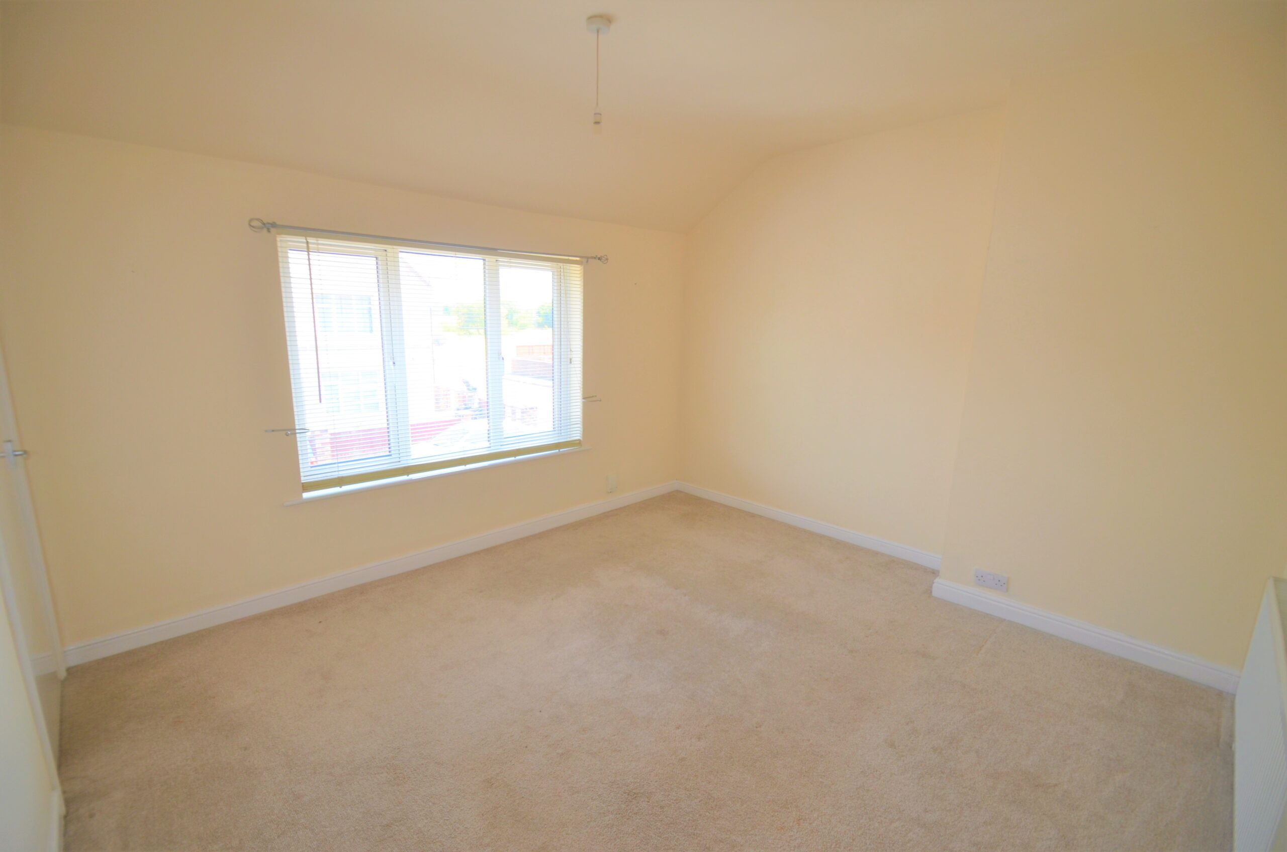 3.8m x 4.56m (12' 6" x 15' 0") Front aspect window, carpet to floor, radiator and single pendant light fitting.