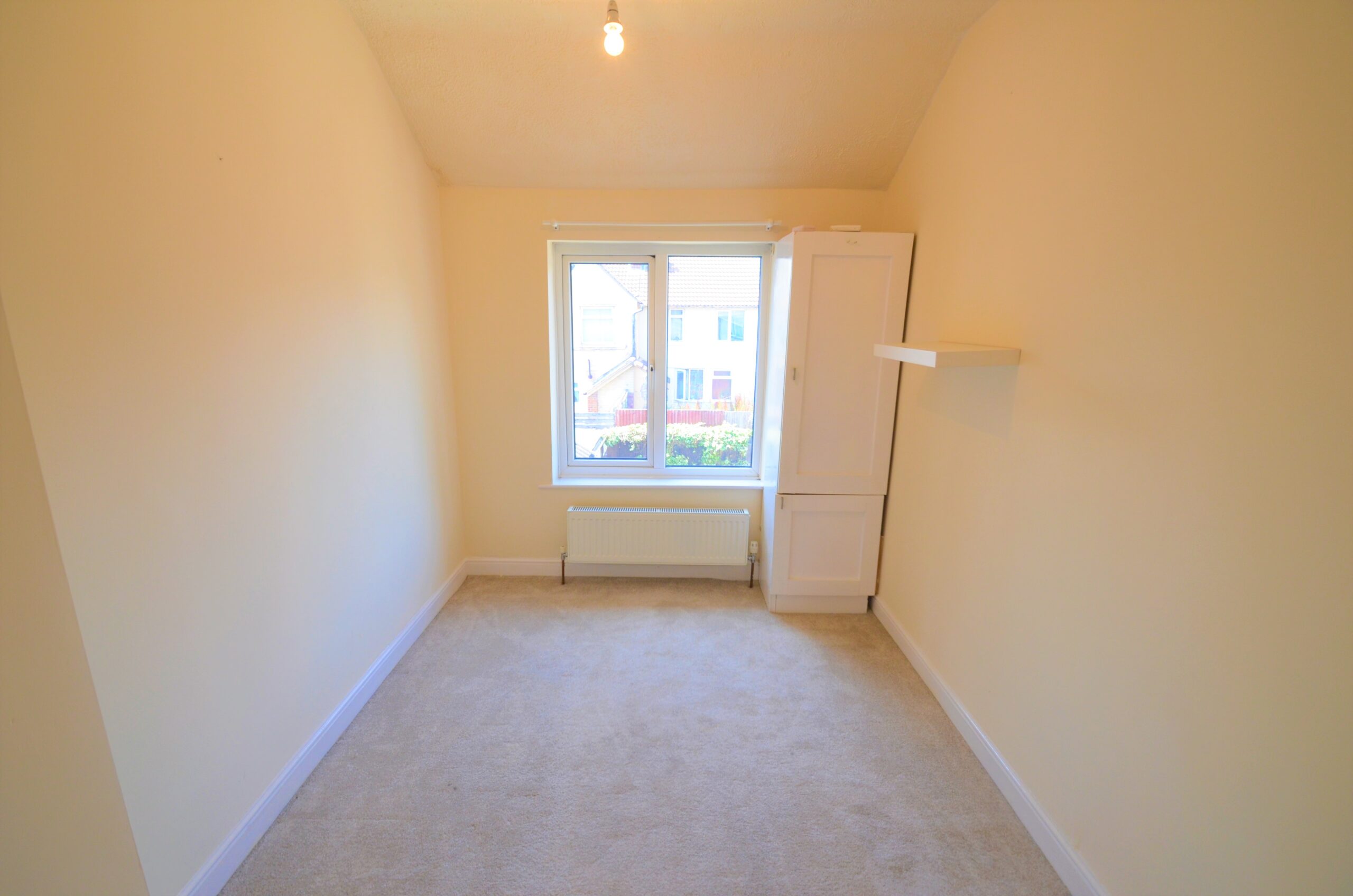2.30m x 3.57m (7' 7" x 11' 9") Maximum measurements. Rear aspect window, carpet to floor, radiator and single pendant light fitting.
