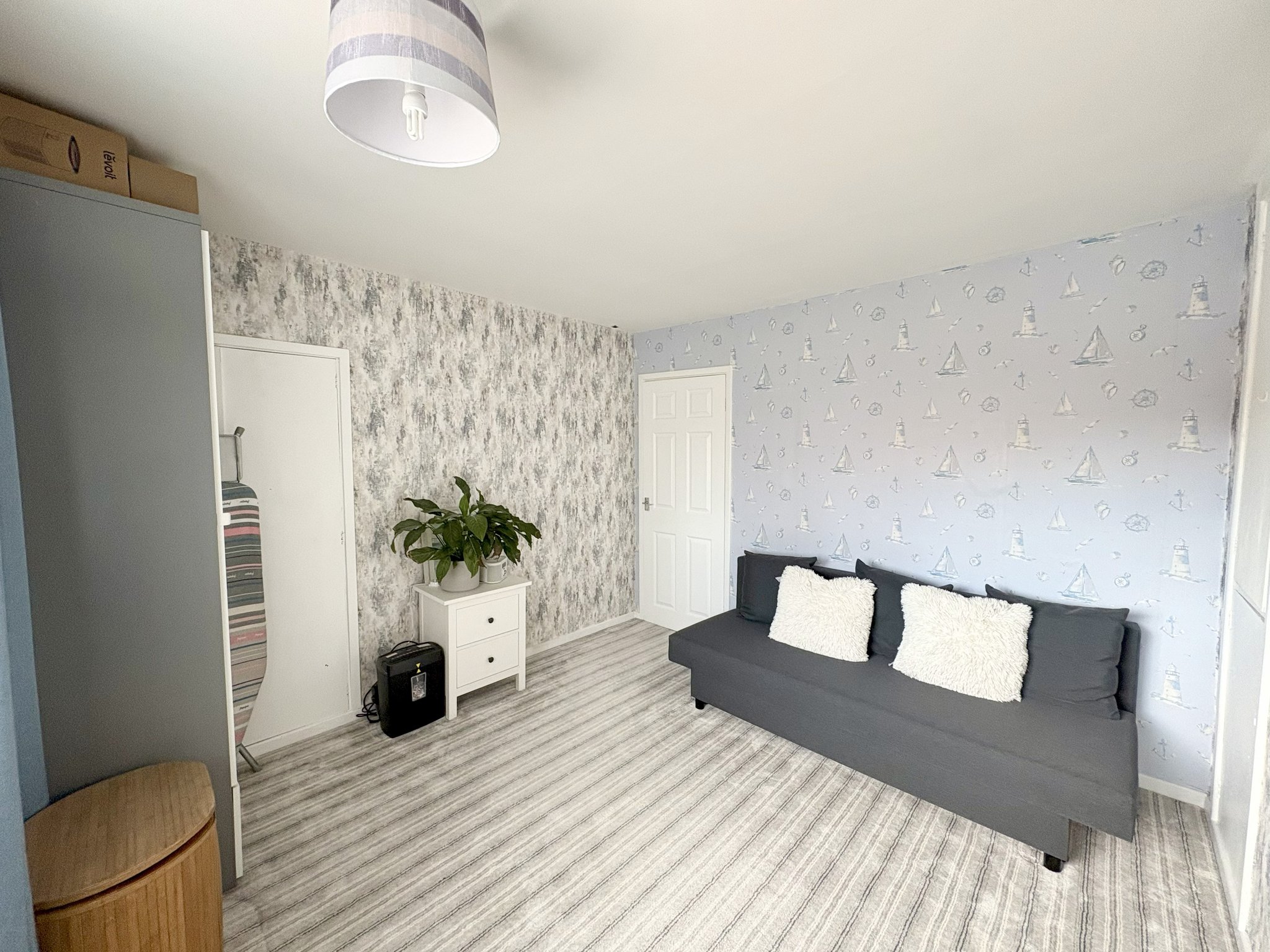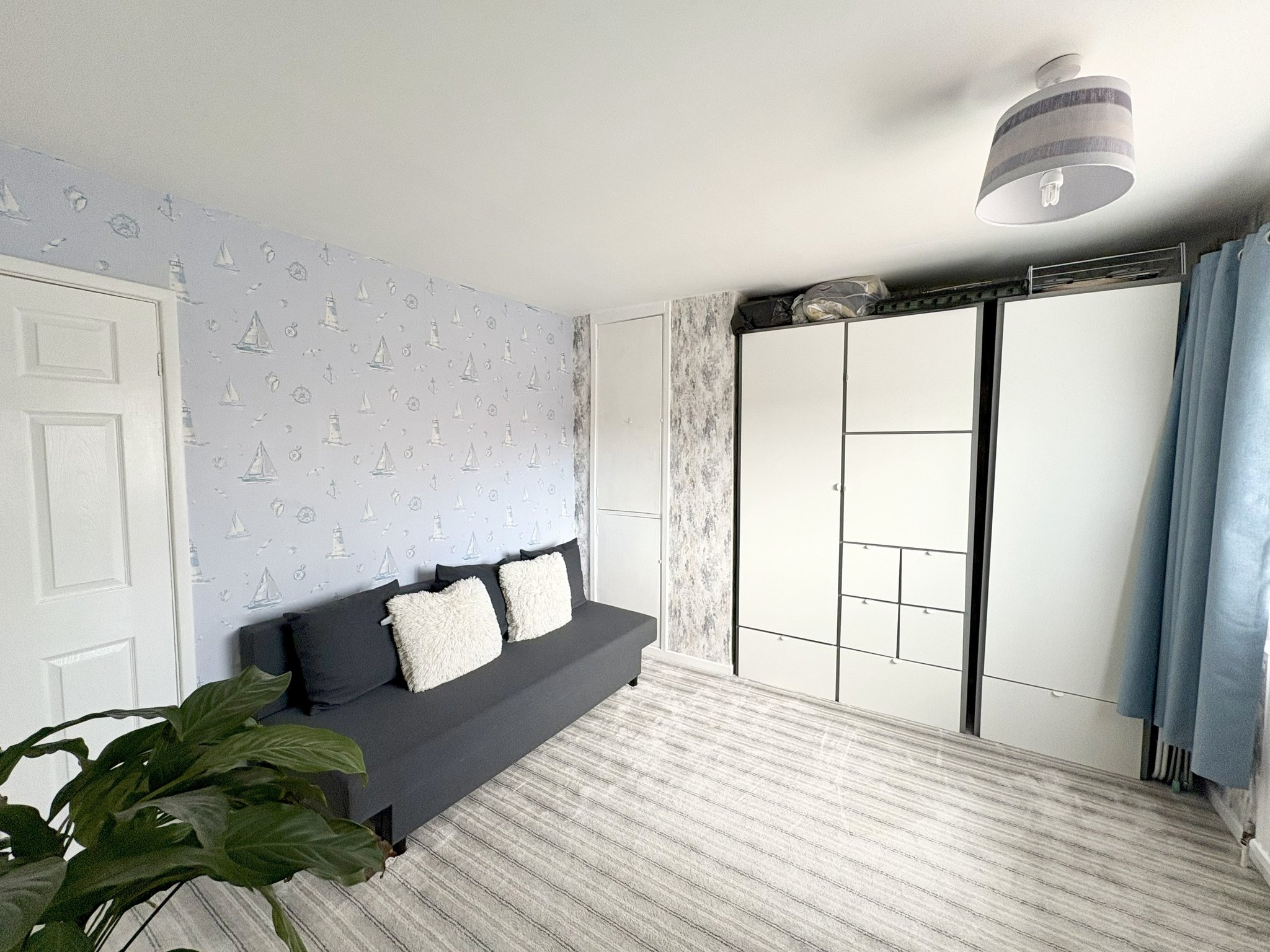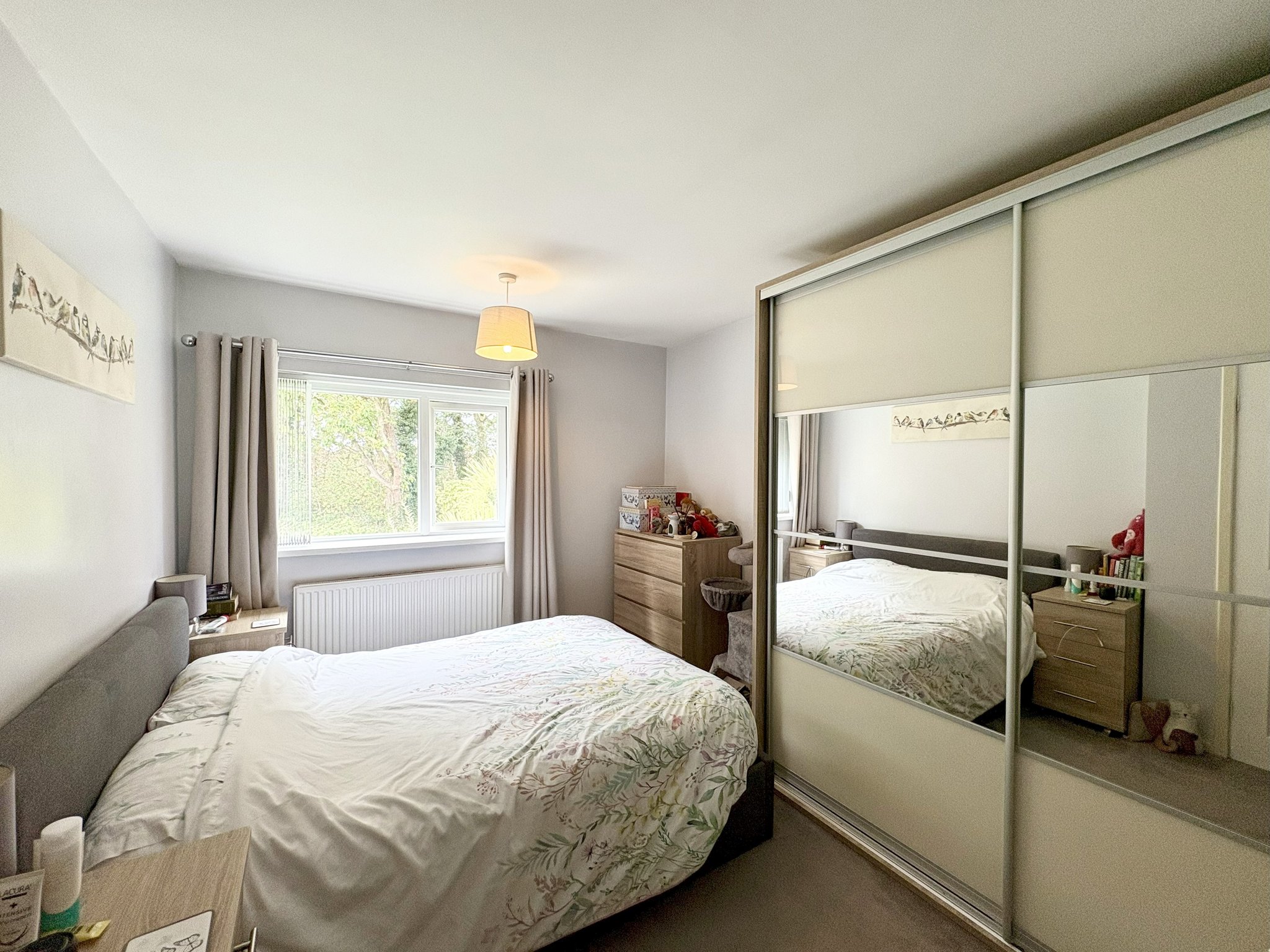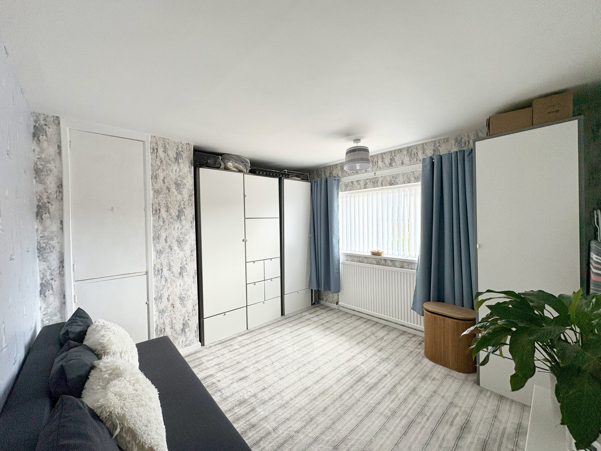 Bedroom One A generous double bedroom located at the front of the property. The room features a large window, modern carpet, radiator, pendant lighting and 2 built-in cupboards providing excellent storage solutions. Comfortably fits a double or king-size bed with additional space for wardrobes or drawers.