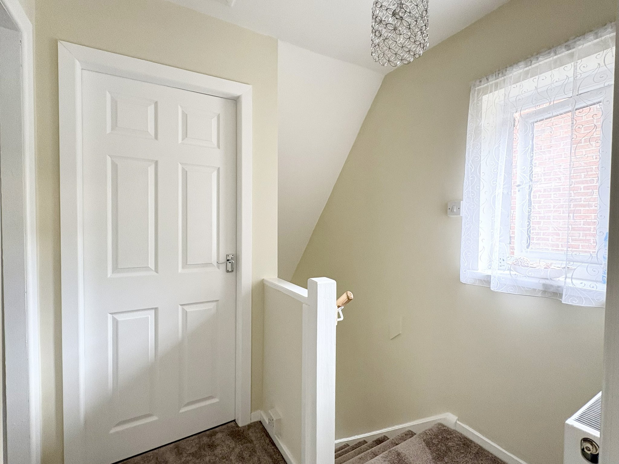 Landing - With a side aspect window, carpeted flooring and loft access. Provides access to the bathroom and both bedrooms.