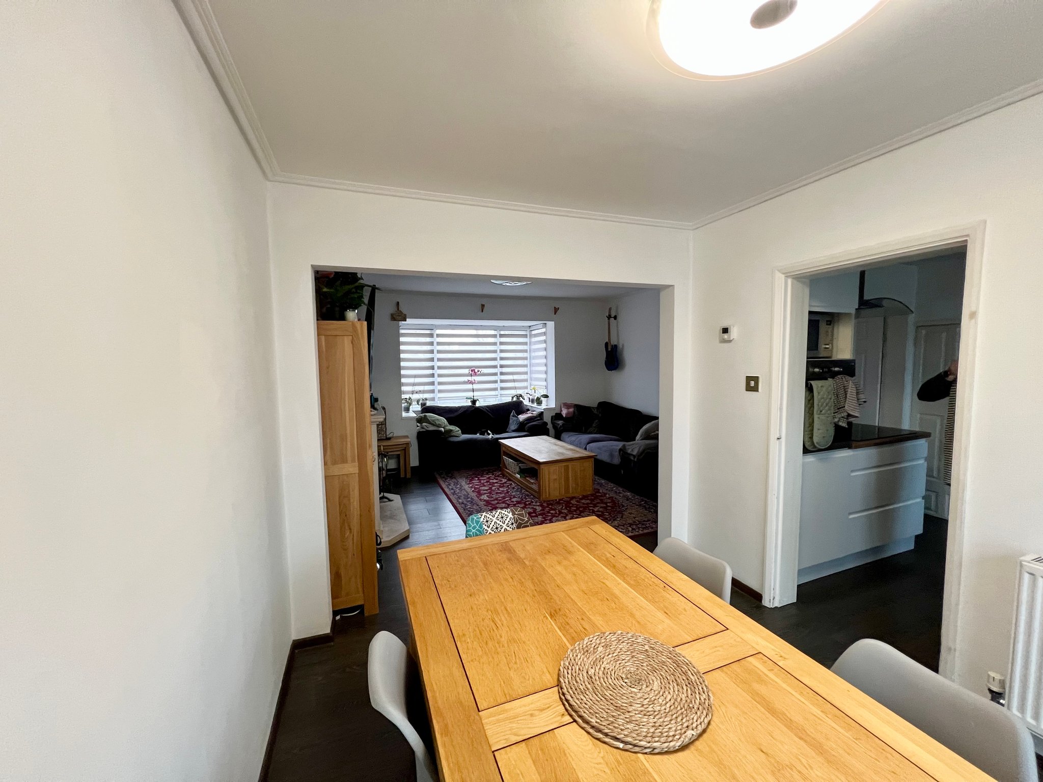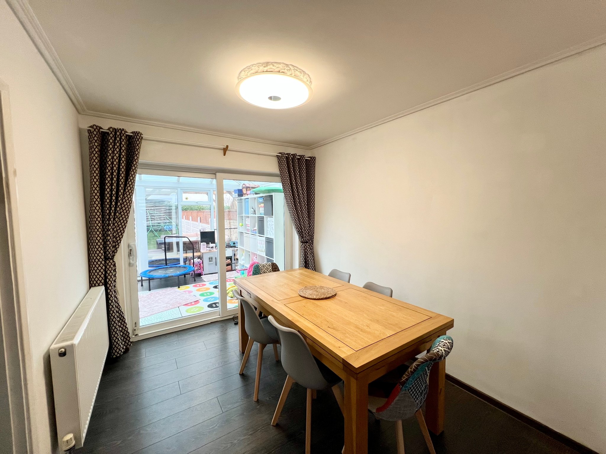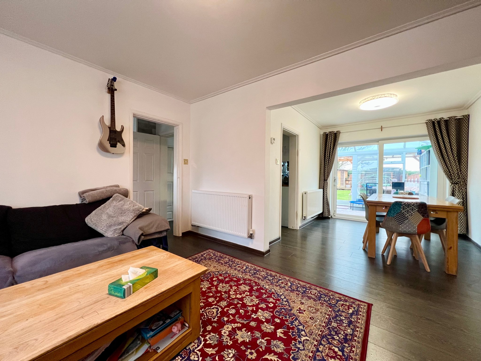 The dining room offers ample space for a family dining table and benefits from laminate flooring, radiator and sliding double glazed patio doors opening directly into the conservatory.