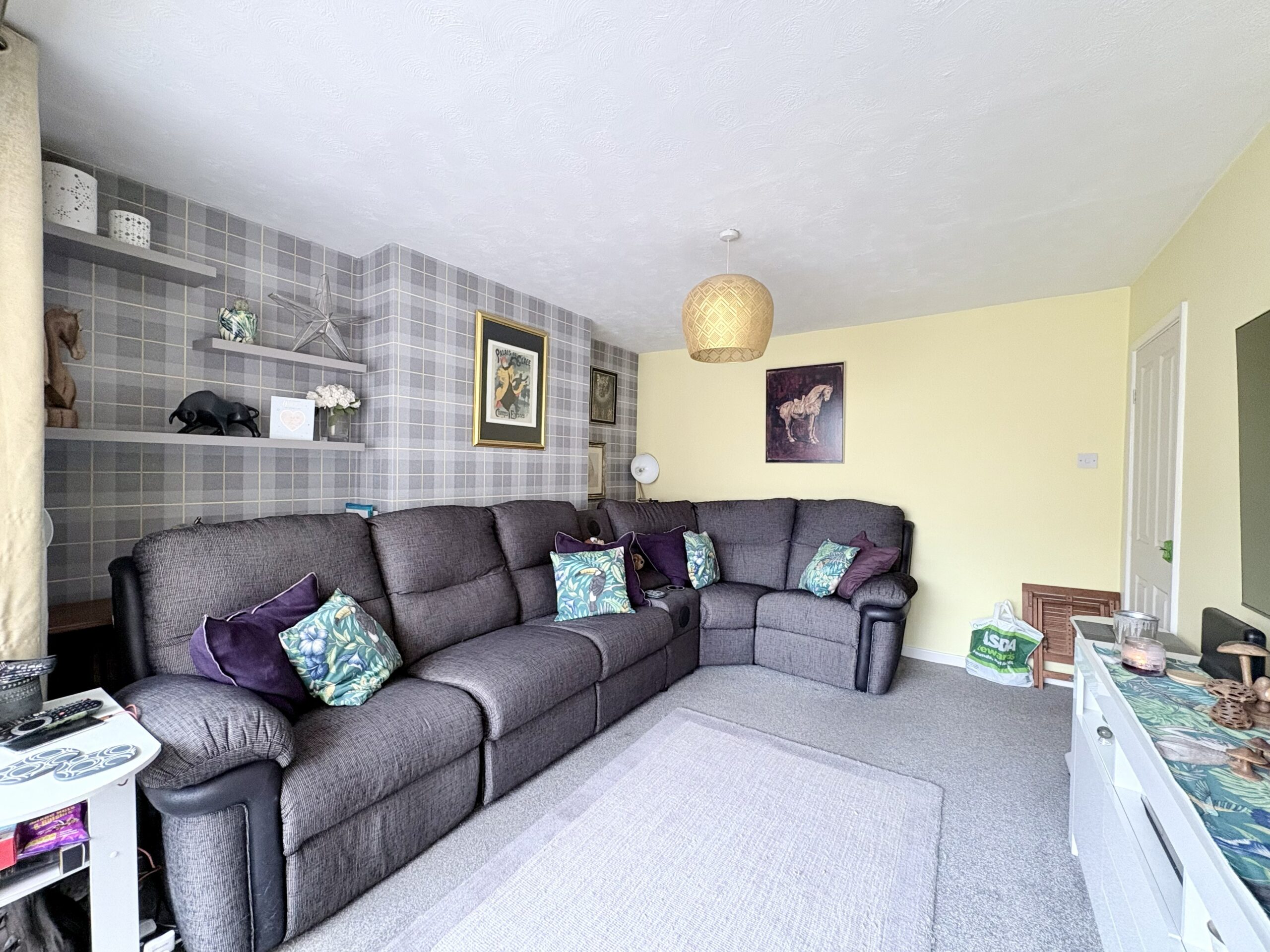 Lounge - A spacious yet cosy family lounge featuring a front-facing double glazed bay window. The room benefits from carpet to floor, a central heating radiator and single pendant light fitting.