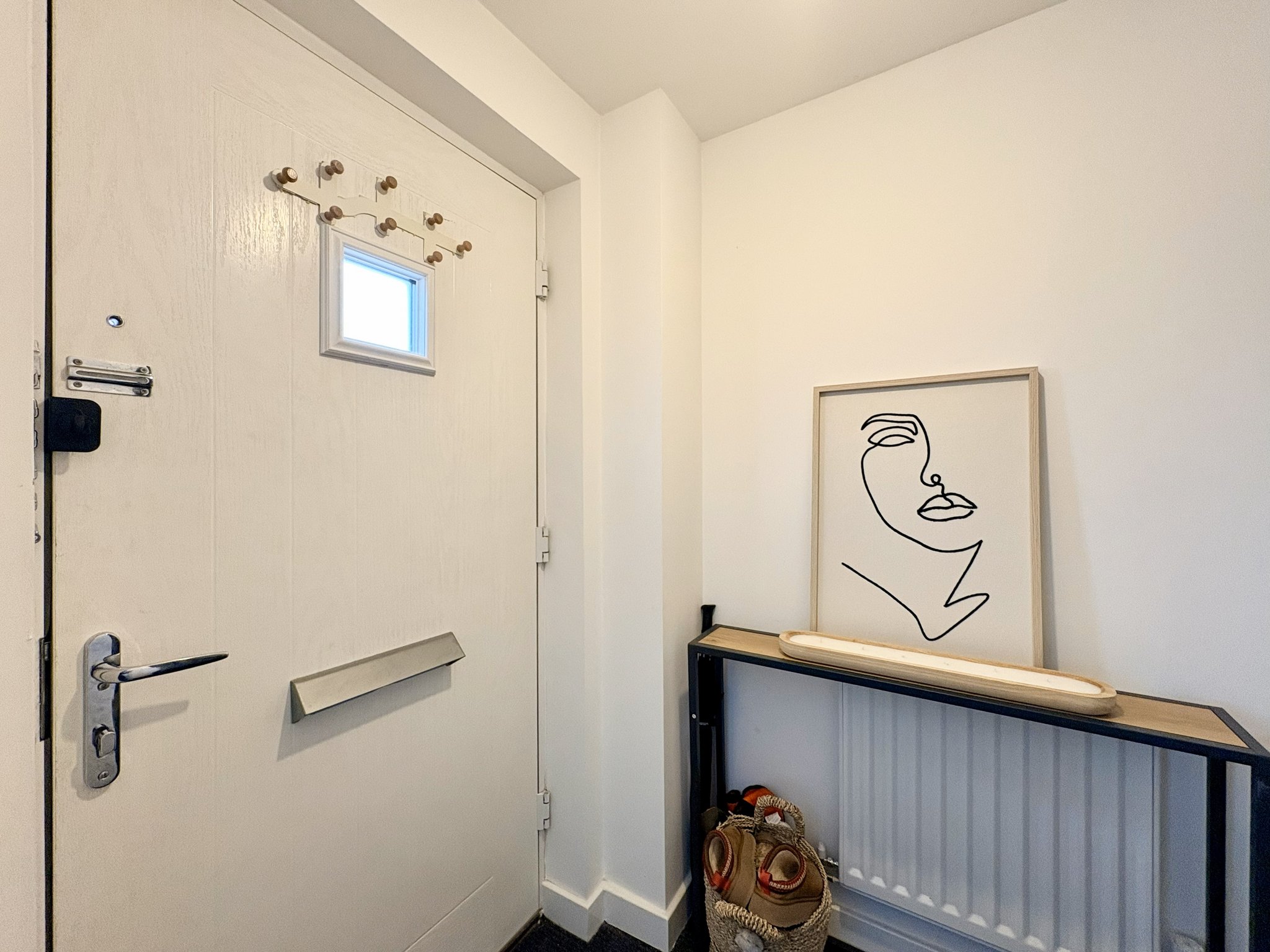 Entrance Hallway - The entrance hallway provides access to the lounge and staircase to the first floor. Finished with carpeted flooring, a radiator, and single pendant light fitting.
