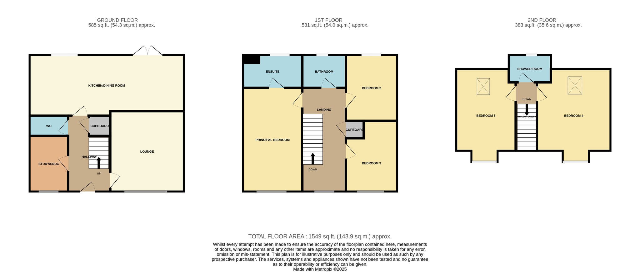 The home itself features a welcoming entrance hallway, lounge, snug/study, open-plan kitchen/dining room, ground floor WC, principal bedroom with en-suite, 4 further double bedrooms, two family bathrooms, a detached garage, and a private driveway with space for up to 2 vehicles.