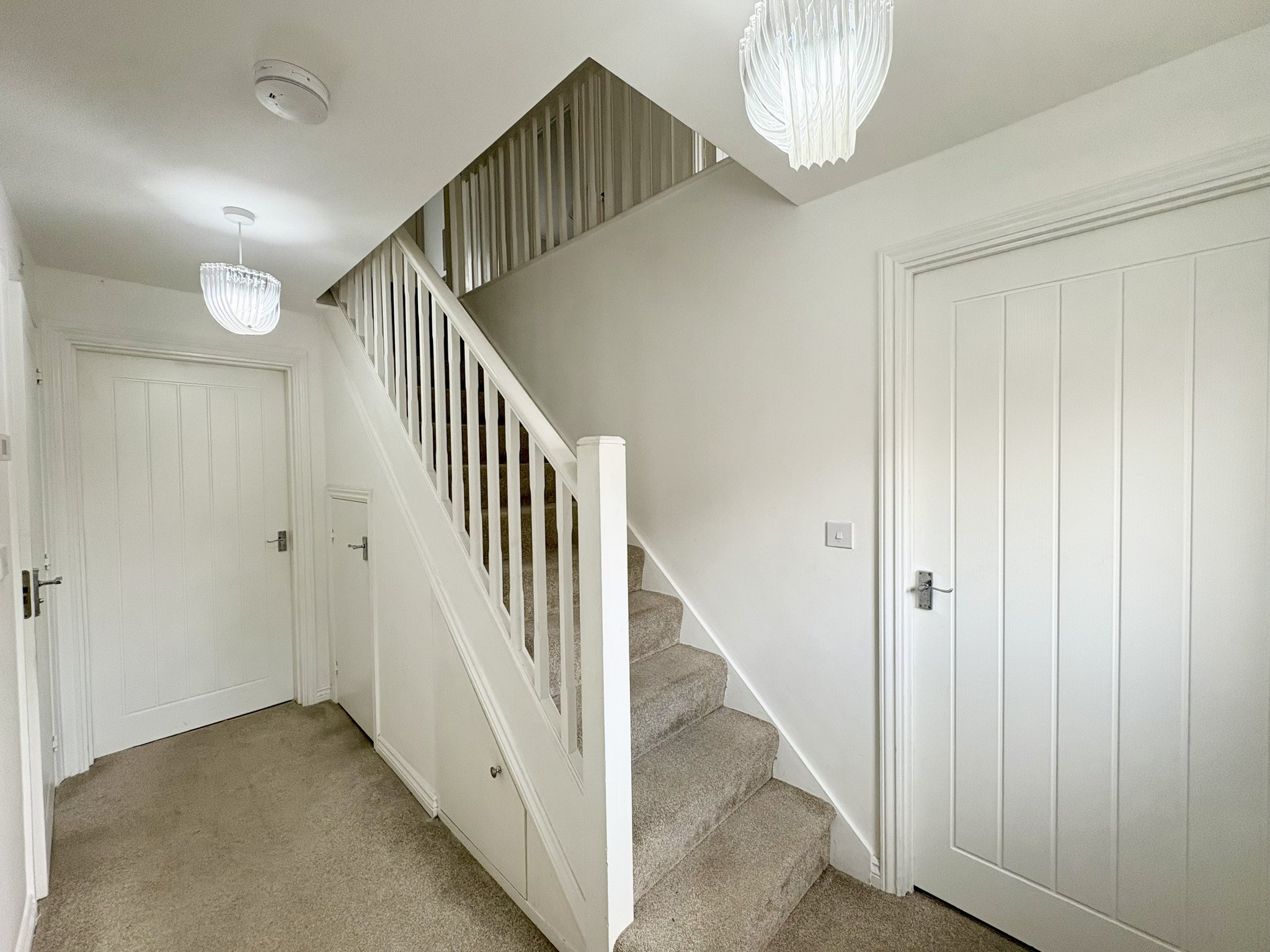 Entrance Hallway - A spacious and welcoming hallway with carpet to floor, radiator, and 2 handy under stairs storage cupboards. Provides access to the lounge, snug/study, kitchen/diner, ground floor WC and stairs to the first floor.