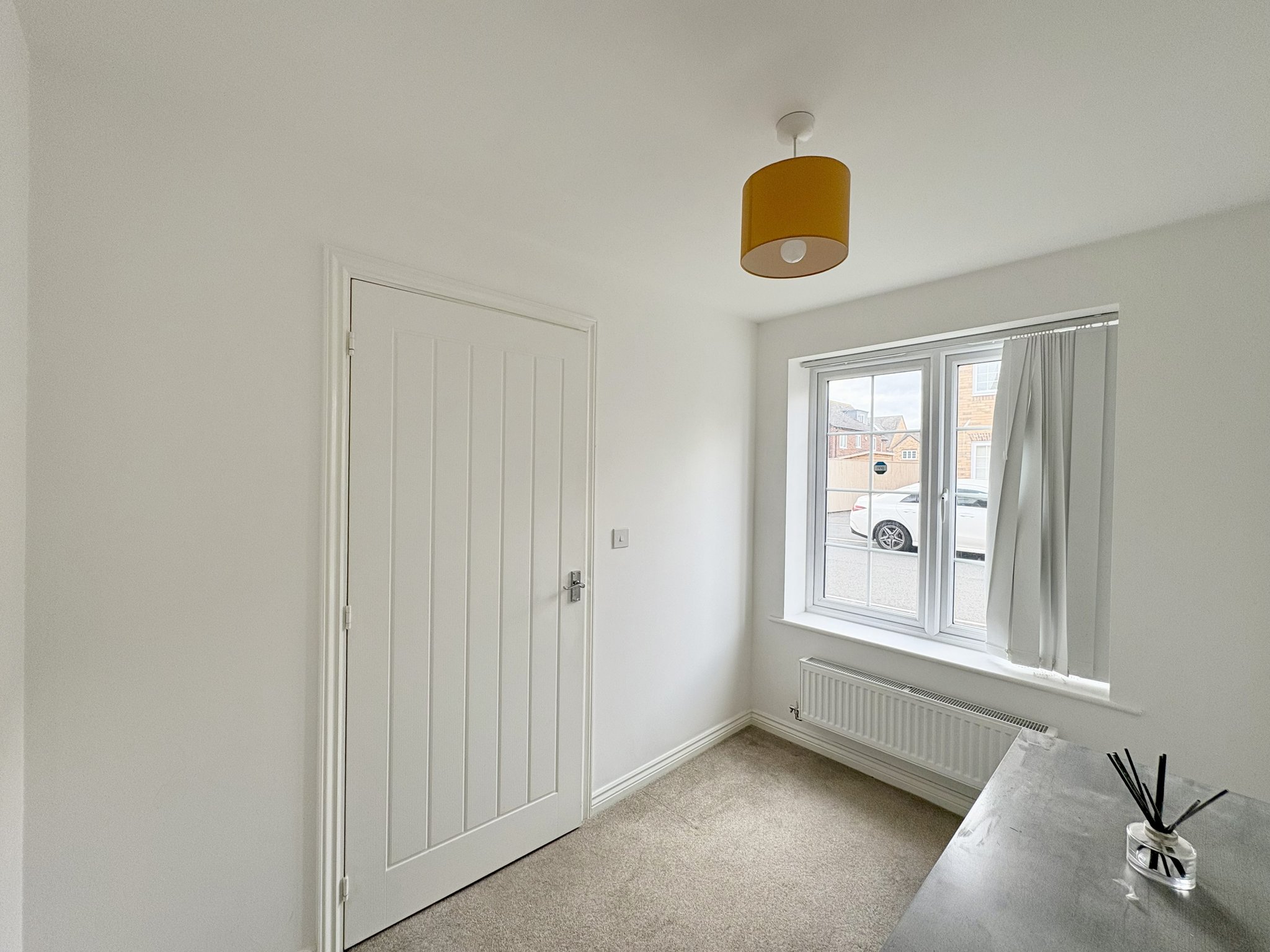 Snug/Study is positioned at the front of the home, this flexible second reception room is ideal as a home office or cosy snug. Features fitted carpet, radiator, and pendant light.