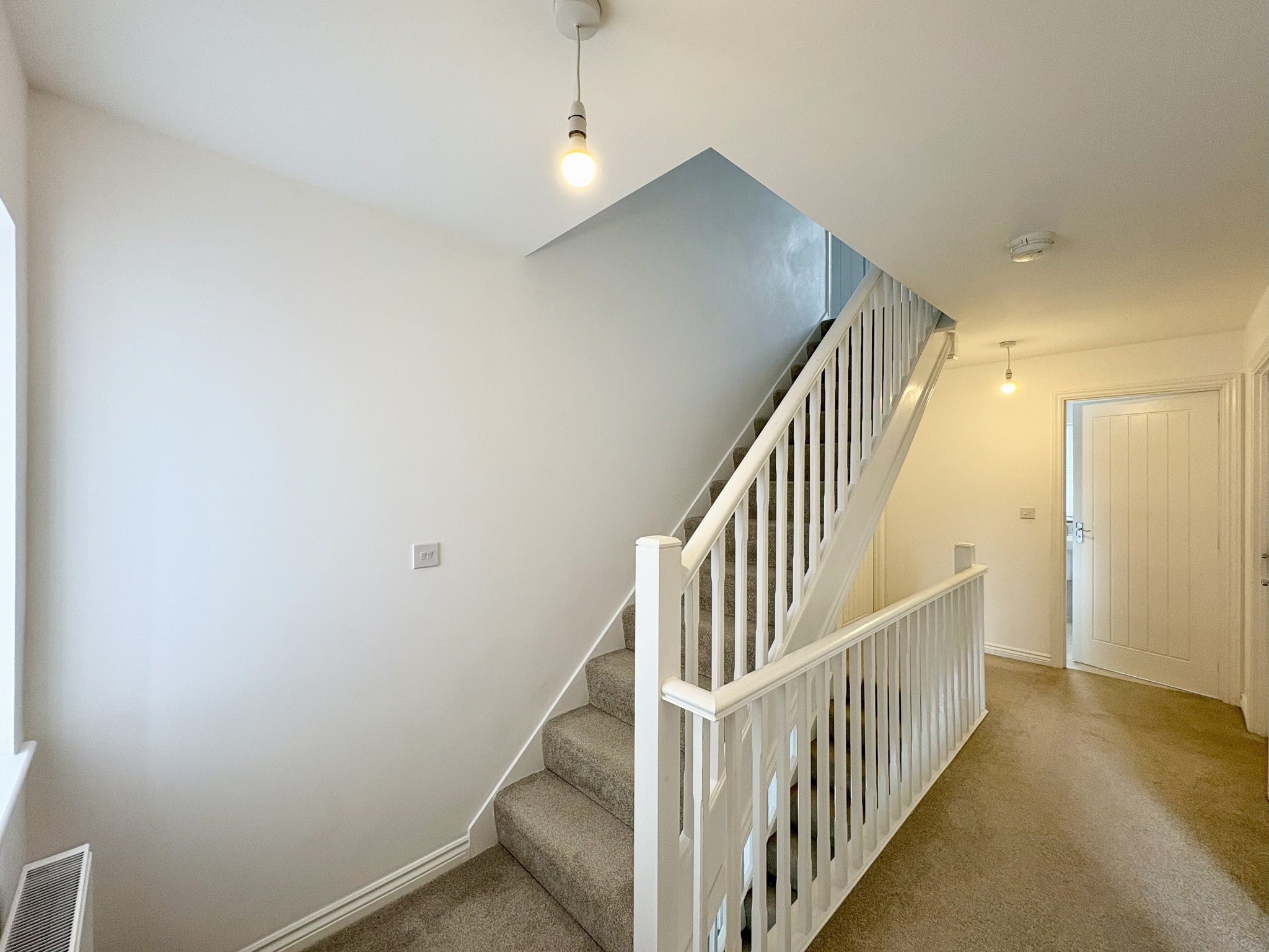 Second Floor Landing giving access to two additional bedrooms and the second family bathroom, with fitted carpet and single pendant light.