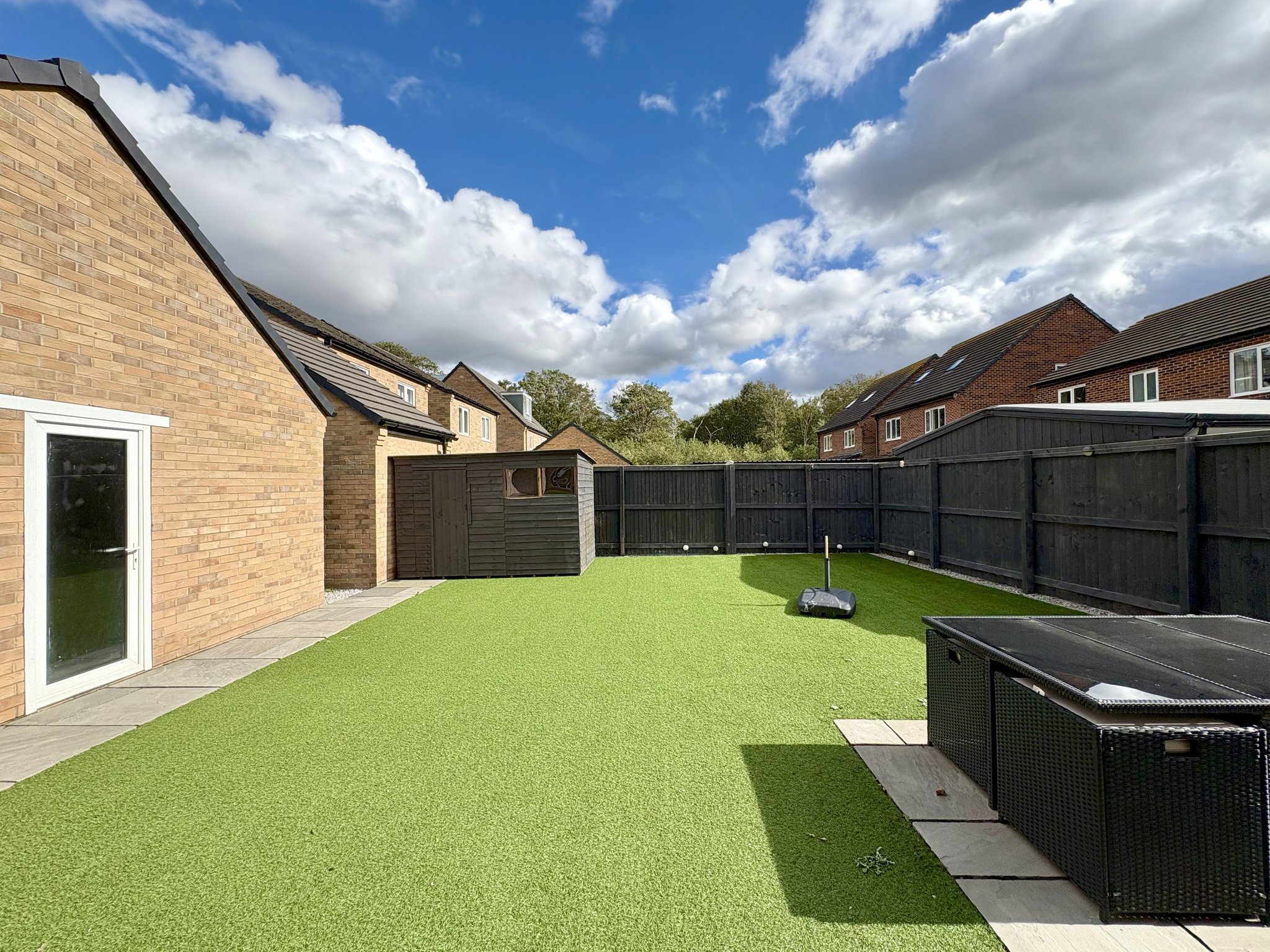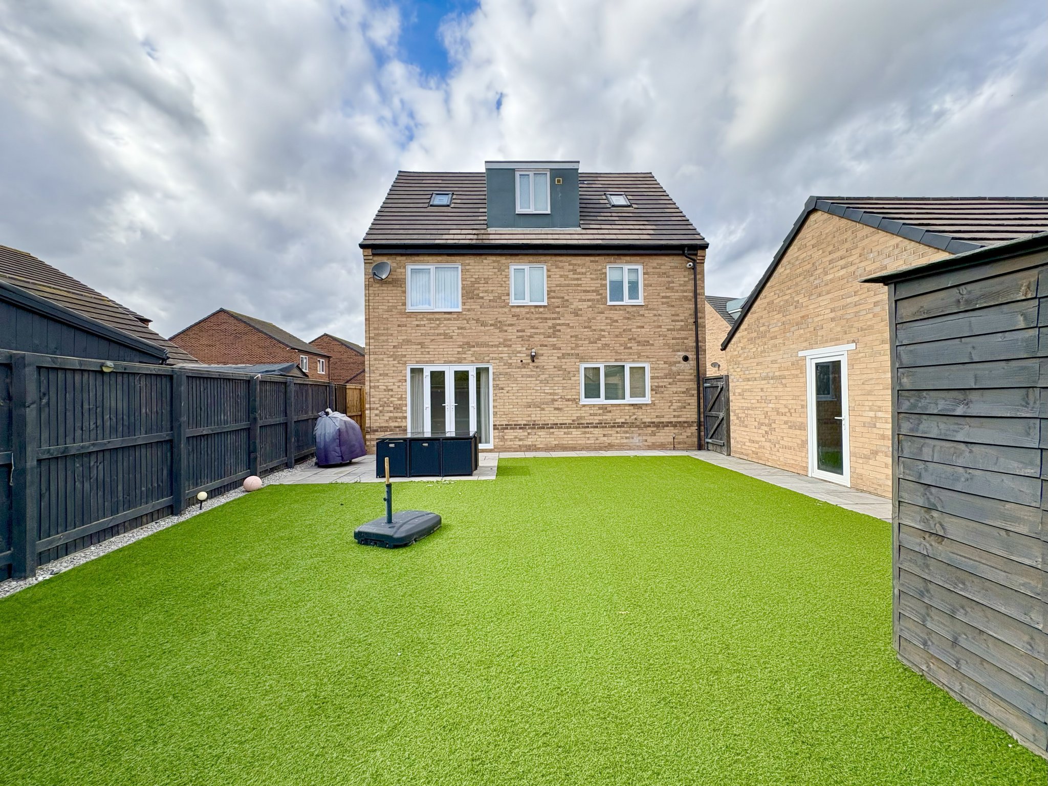 The rear garden is fully enclosed and designed for low maintenance. It includes a large artificial lawn ideal for children and pets, along with patio area for al fresco dining and socialising.