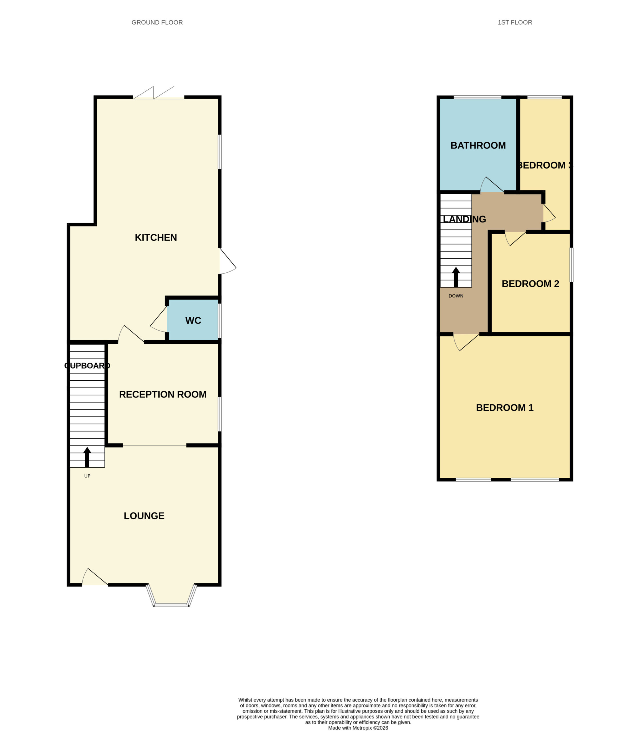convenient ground floor WC. Upstairs, there are three bedrooms and