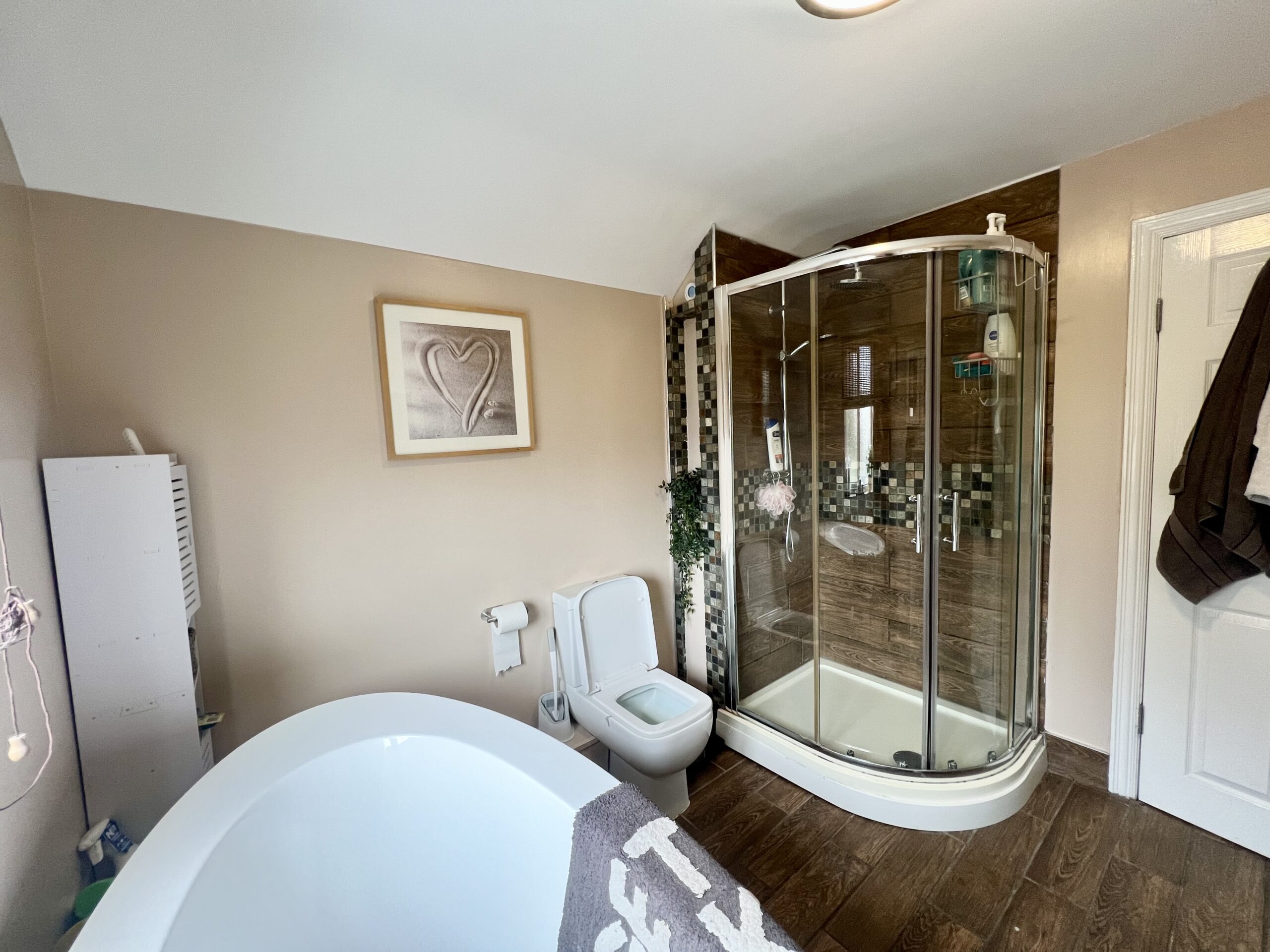 Family bathroom is a true showstopper, beautifully appointed with a stunning freestanding bath tub and a
