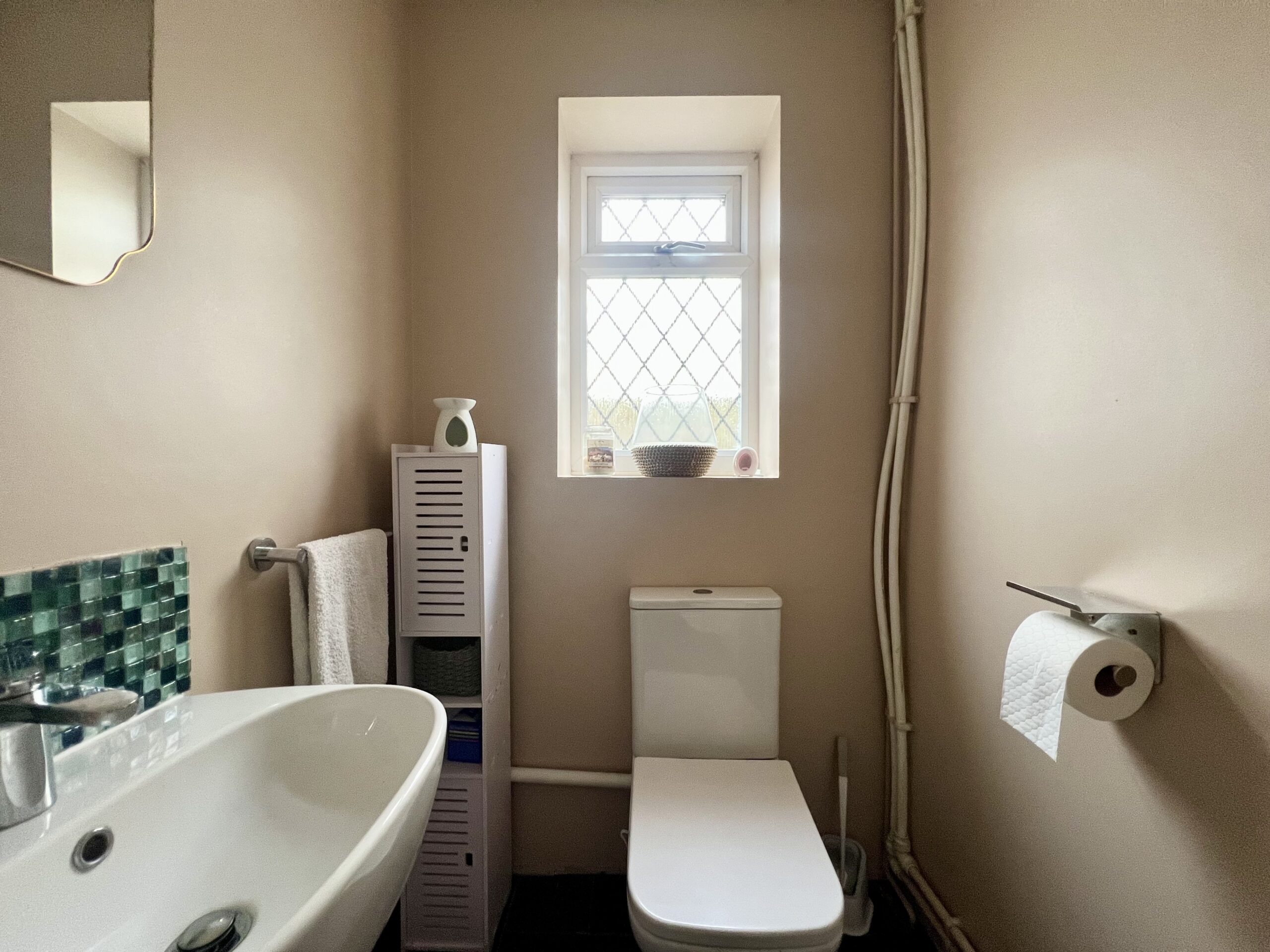 The ground floor also benefits from a conveniently located WC, fitted with a low-level WC and wash hand