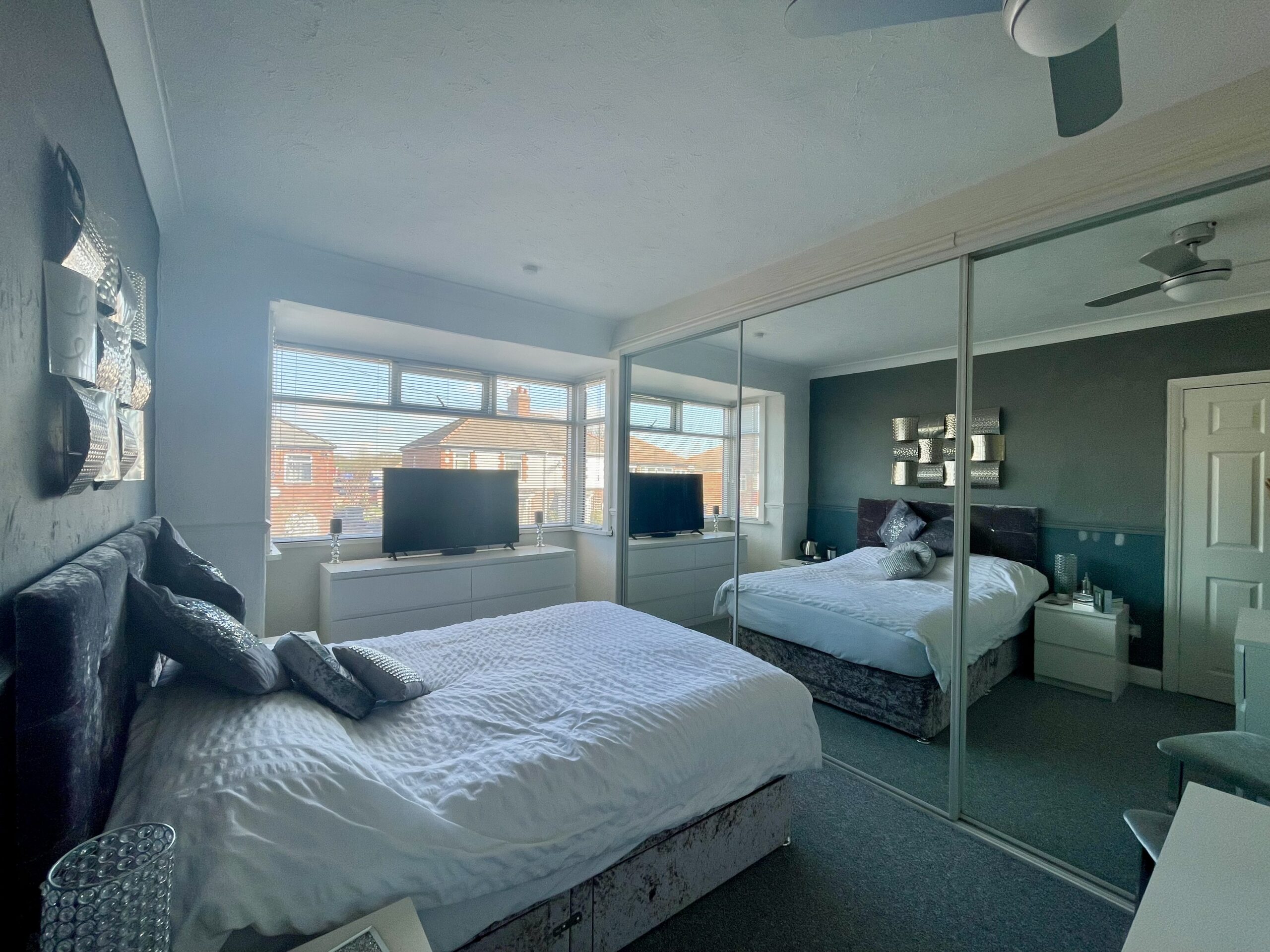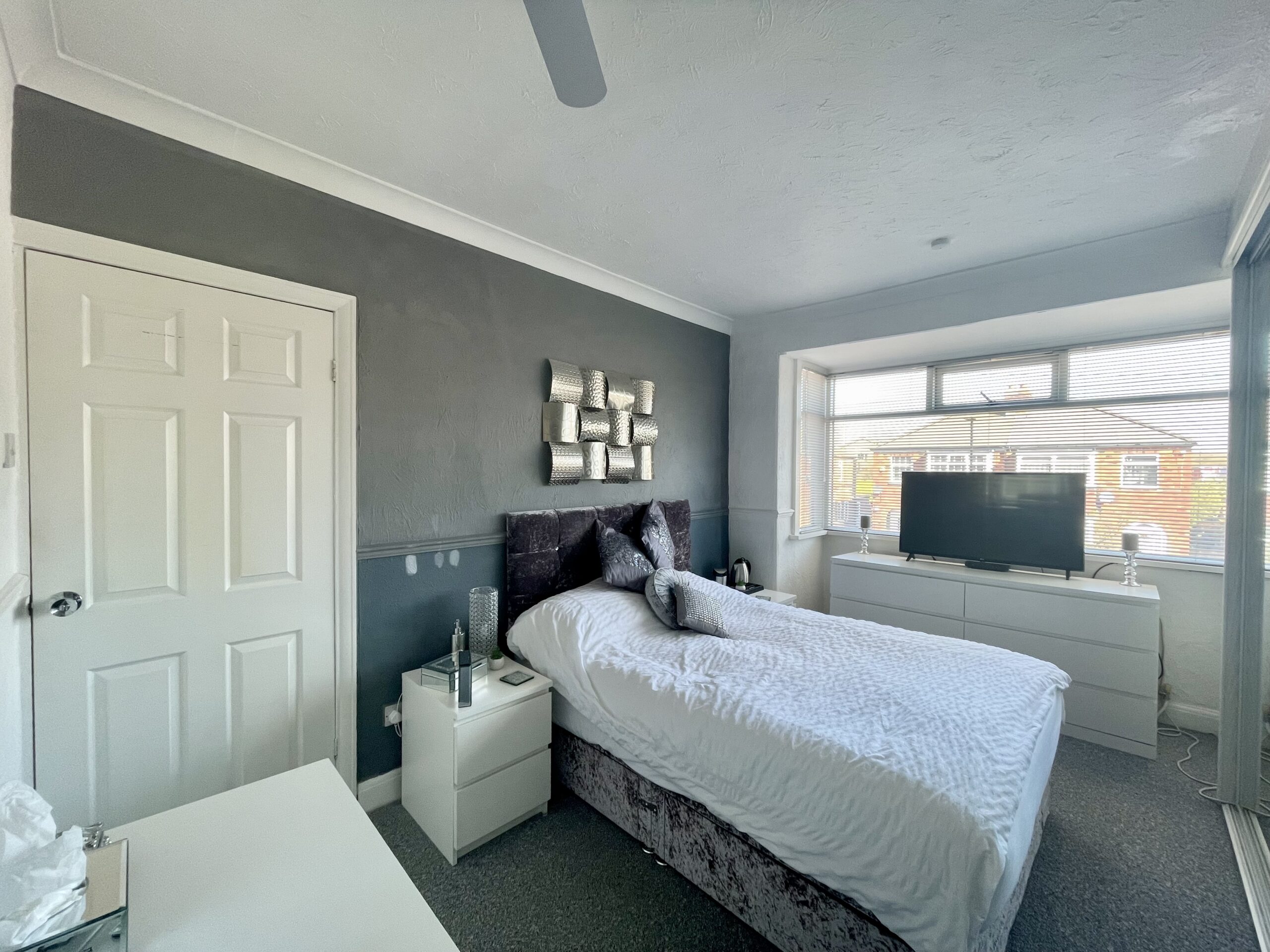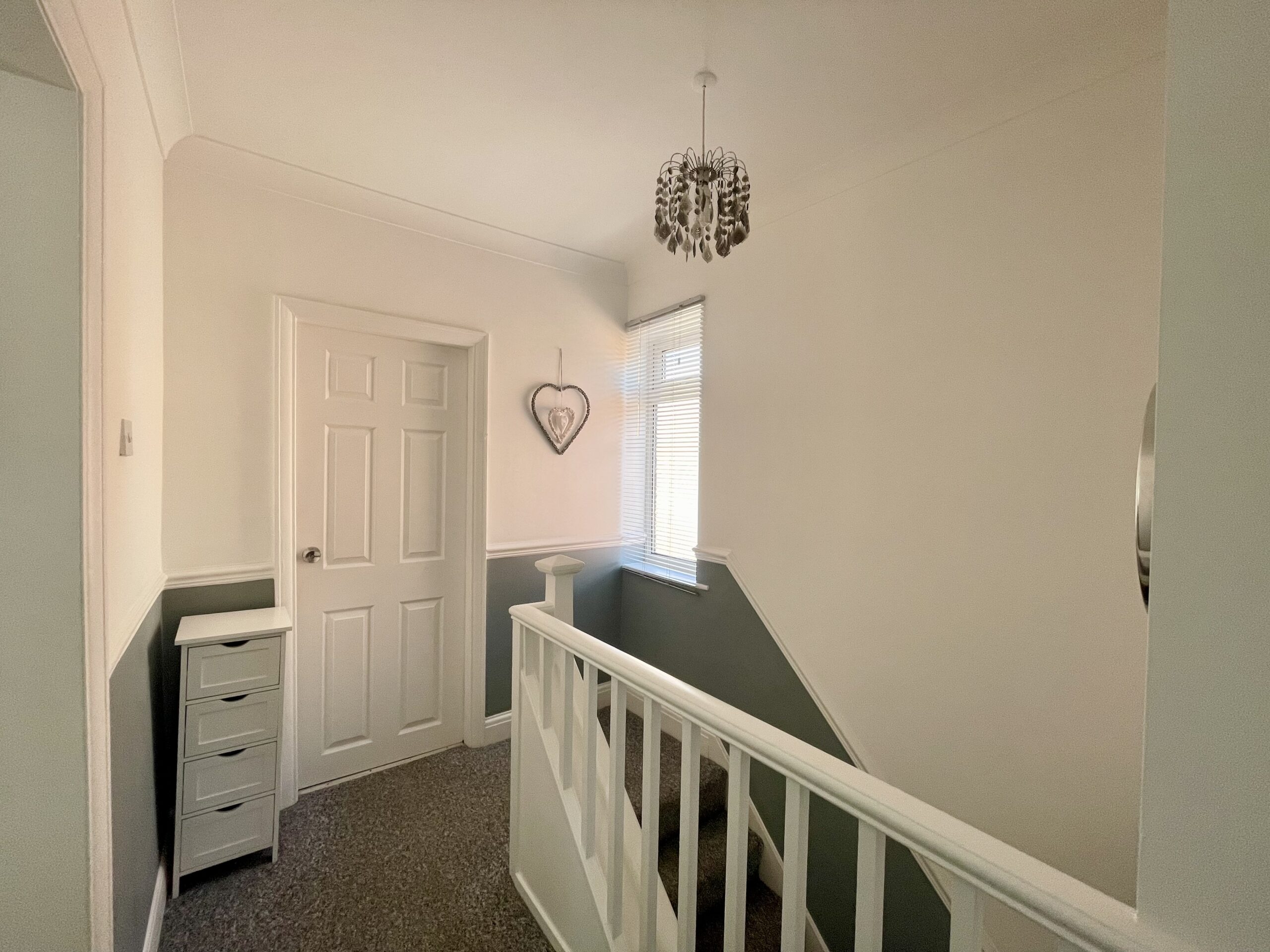 The landing offers access to the bedrooms and family bathroom. There is carpet to the floor, single pendant light fitting and side aspect window. A front aspect principal bedroom with large bay window.