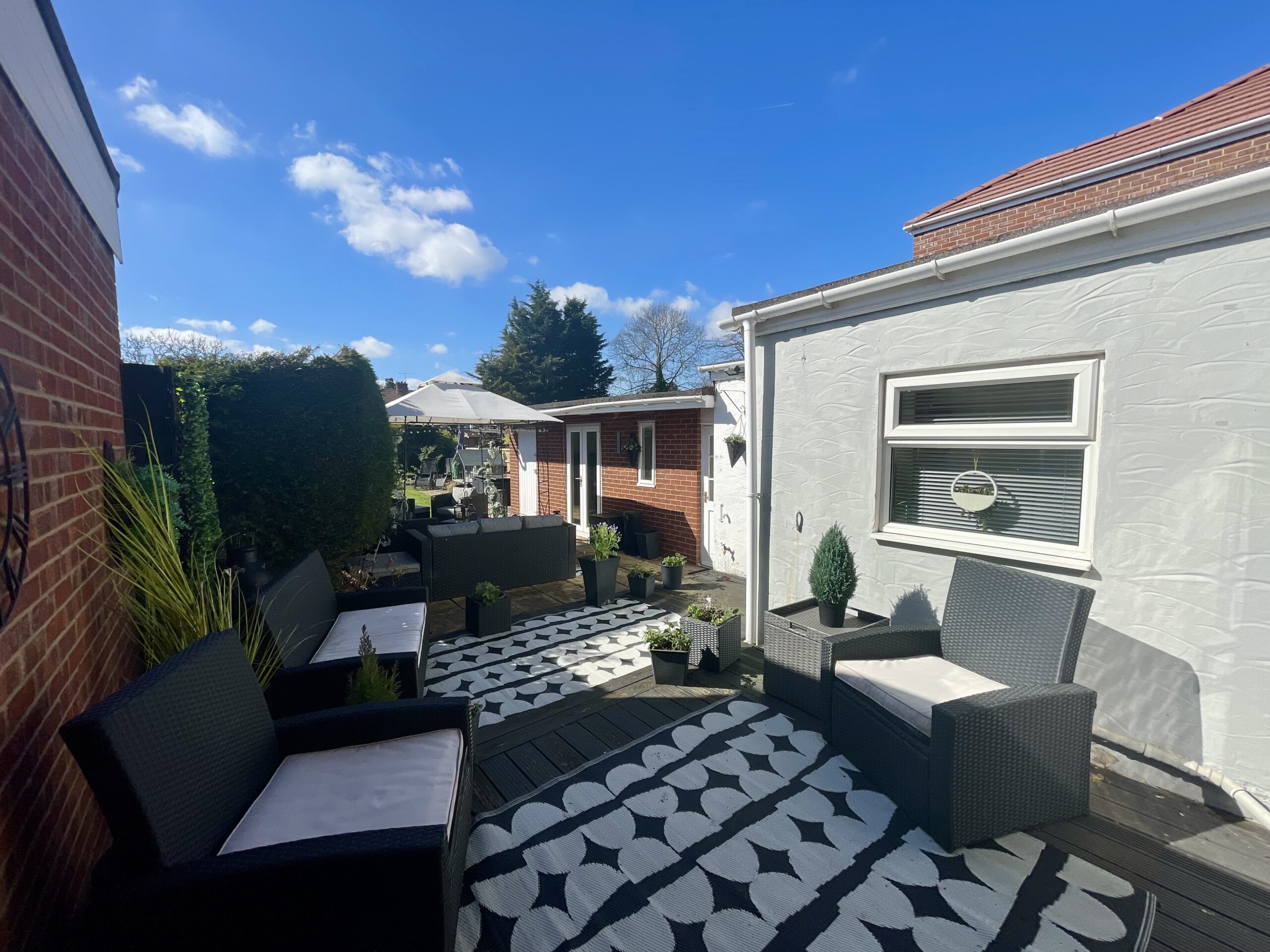 The dining room has large sliding doors which lead onto the decking outside, making it a great area for entertaining friends and family. Carpet to floor, single pendant light fitting and central heating radiator. Door leading to the kitchen.