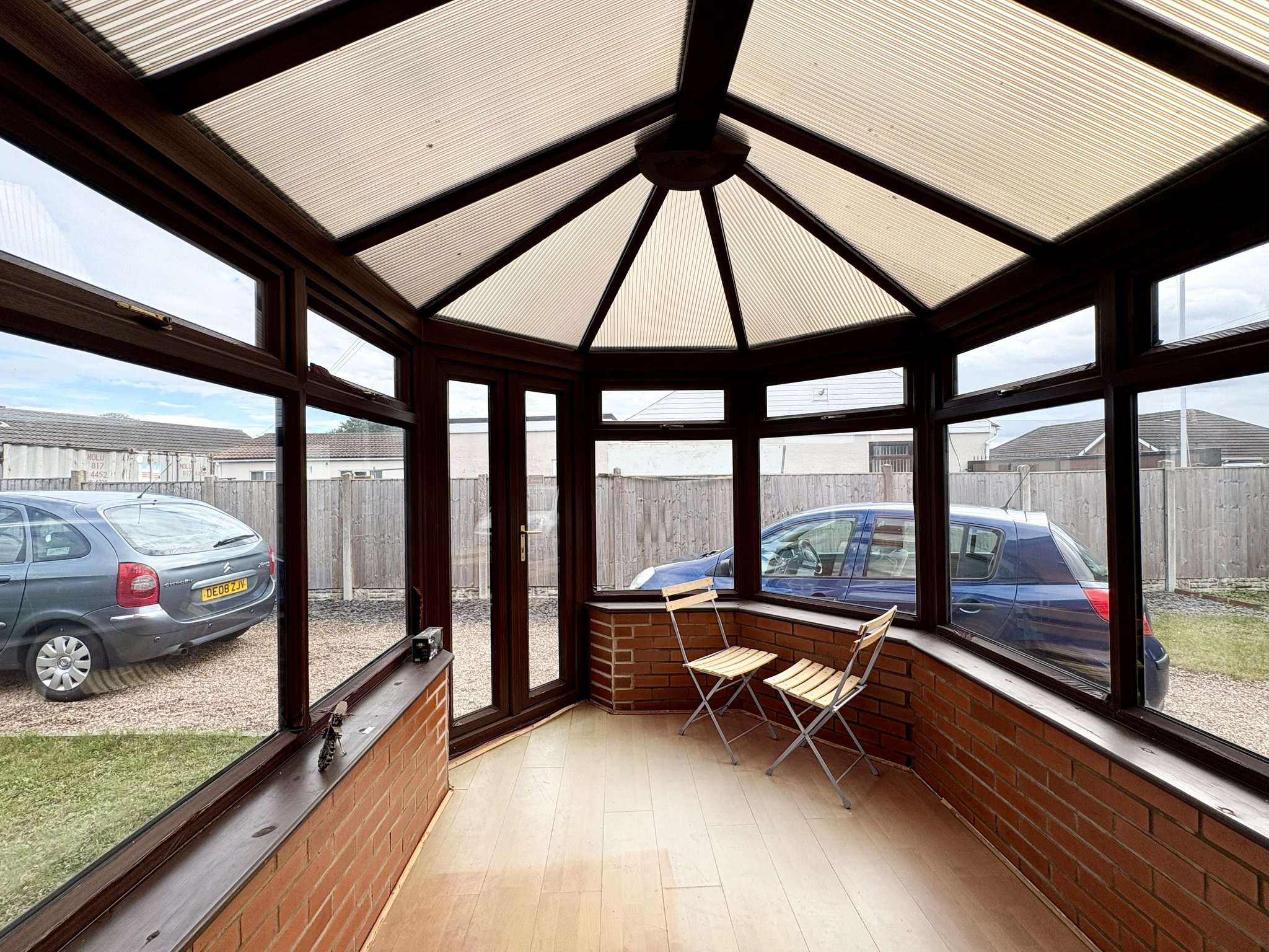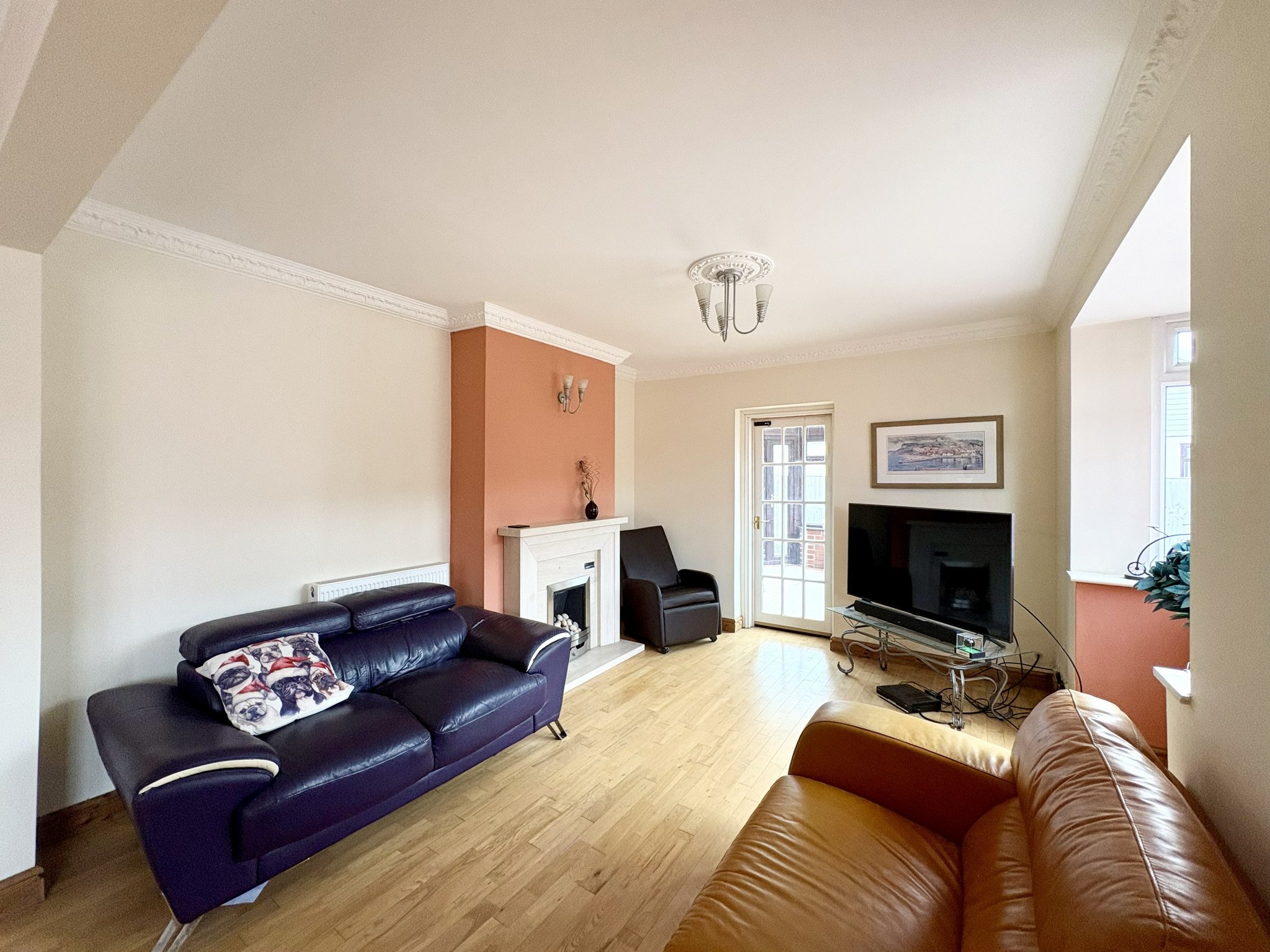 The property offers well-proportioned accommodation throughout, with radiators and single pendant light fittings in every room, creating a comfortable and functional layout. On the ground floor, an inviting entrance hall leads to a large main reception room, beautifully finished with wood flooring and a feature fireplace, providing an impressive and versatile living space. The fitted kitchen is both practical and functional, with ample base and wall units, work surfaces, and a convenient side access door leading to the exterior. A bright conservatory sits to the rear, with French doors opening onto a private paved patio and enclosed side garden - perfect for outdoor dining and relaxation. The ground floor also benefits from a single bedroom and adjoining shower room, offering flexibility for guests or multigenerational living.