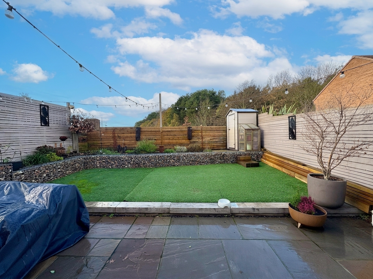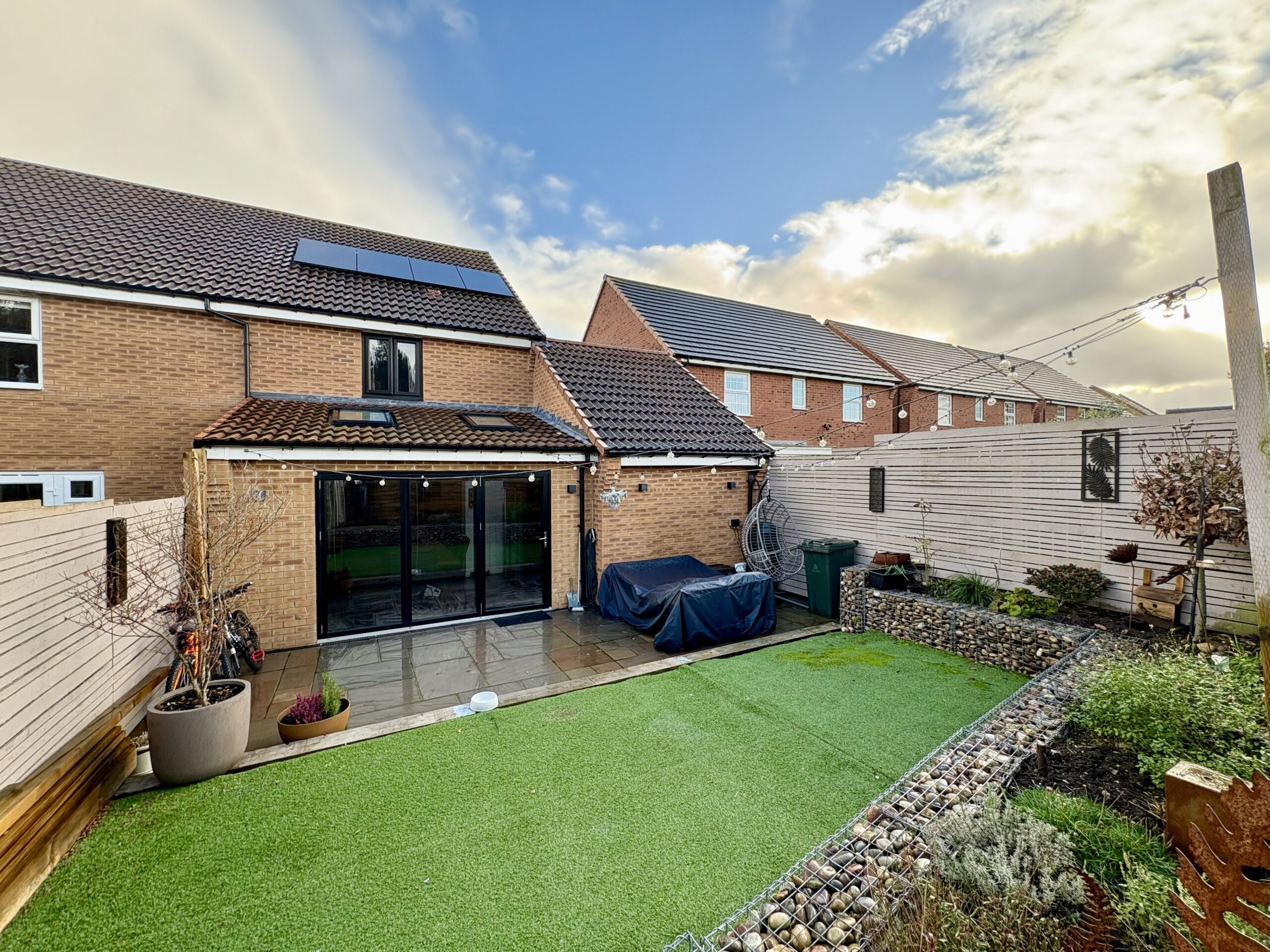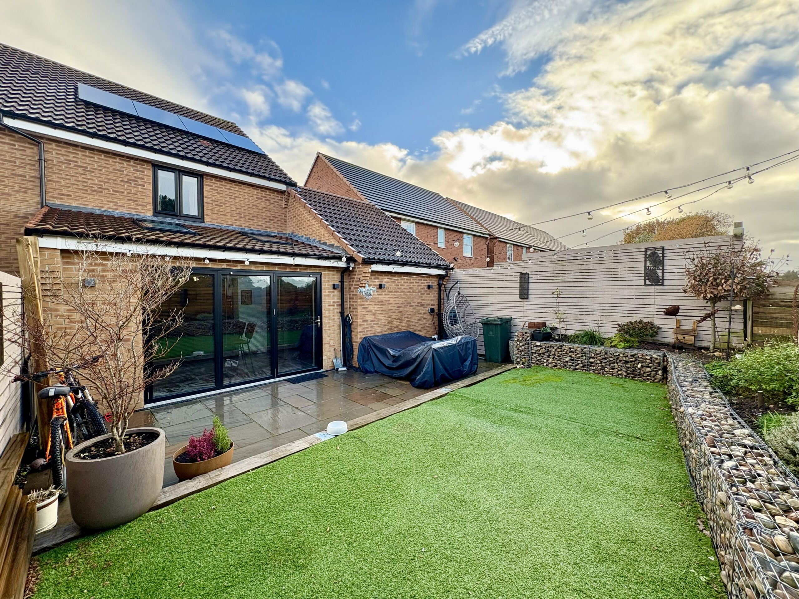 To the front of the property is a paved driveway providing off-road parking for up to three vehicles, along with access to the integrated single garage which has a pedestrian door for easy access. The garage has power and lighting and offers a spacious loft which is boarded and accessed via a fixed loft ladder providing ample storage space. The rear garden is private, south-west-facing and designed for low maintenance, featuring both patio and artificial lawned areas. This is an ideal space for outdoor dining, entertaining and family activities.