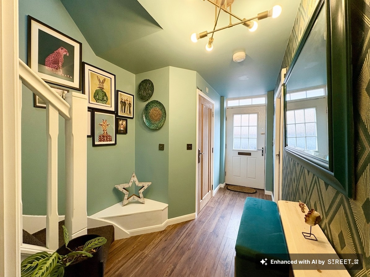 Upon entering, a welcoming hallway with wood-effect laminate flooring provides access to the snug/office, lounge, ground floor WC and stairs to the first floor.