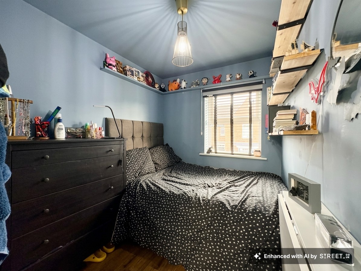 Bedroom One is a well-proportioned double room featuring a walk-in wardrobe, carpet, radiator and pendant lighting. It also benefits from a recently refurbished en-suite shower room, finished with part-tiled walls, a walk-in shower, twin hand basins with storage, spot lighting and a heated towel rail.
