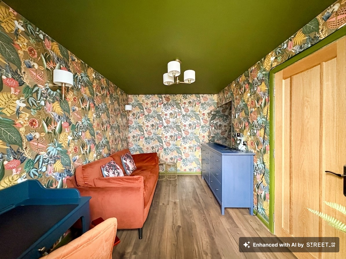 To the front of the property, the snug or home office offers a versatile space ideal for home working or quiet relaxation. It features wood-effect laminate flooring, a front-aspect bay window, radiator and single pendant light fitting.