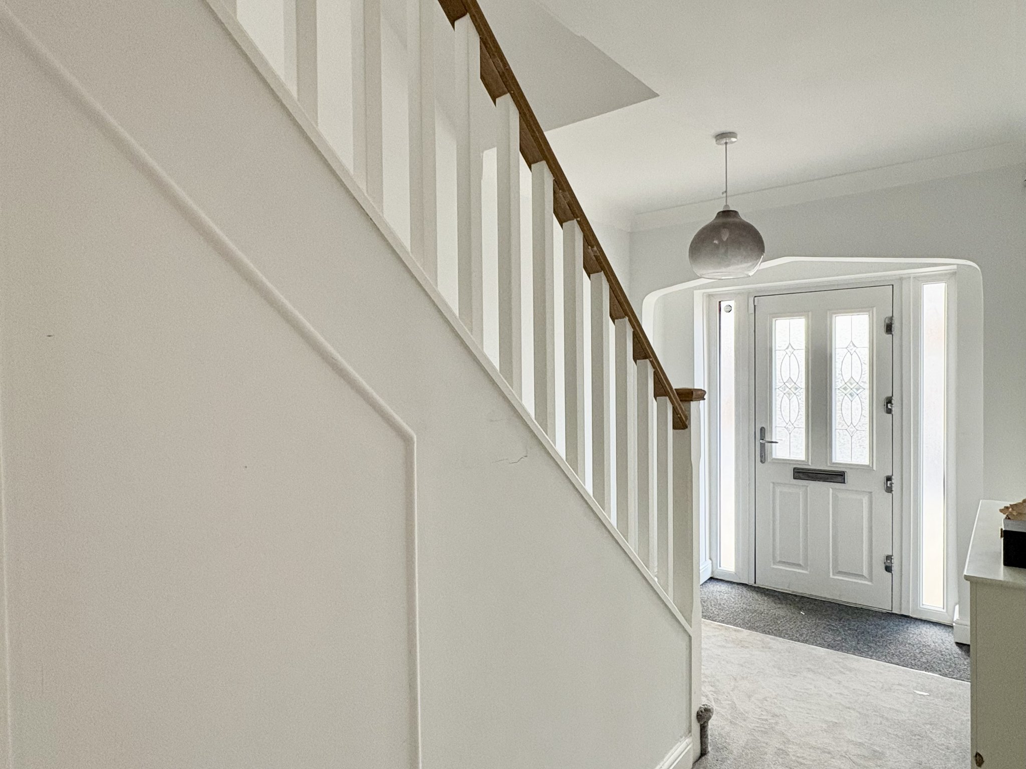 Ground Floor - The welcoming entrance hallway is fitted with carpet flooring, a radiator, single pendant light fitting, and a staircase leading to the first floor. There is also a useful under-stairs storage cupboard.