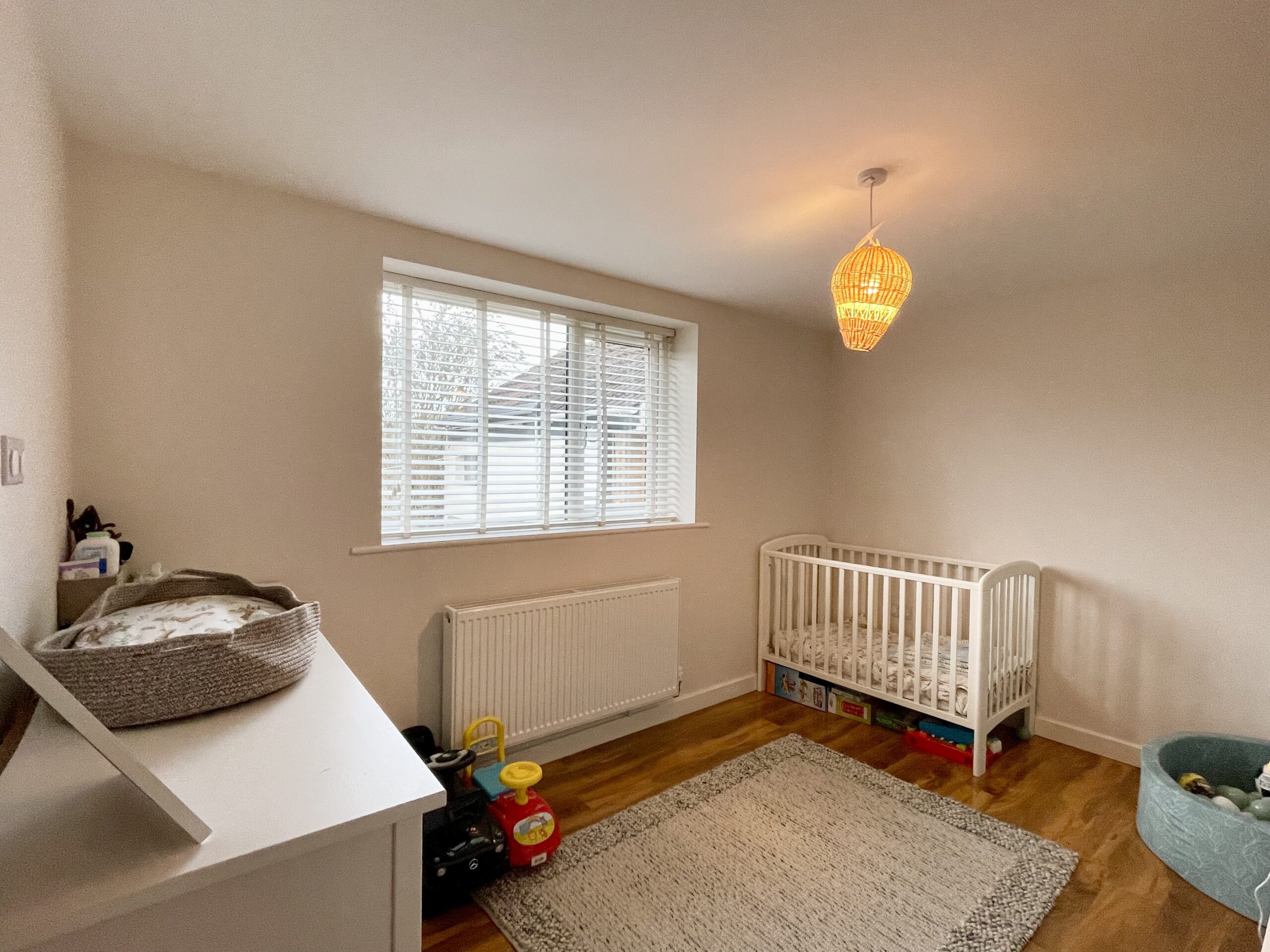 laminate flooring, a designer radiator, two useful storage cupboards ideal for coats and shoes, ceiling pendant