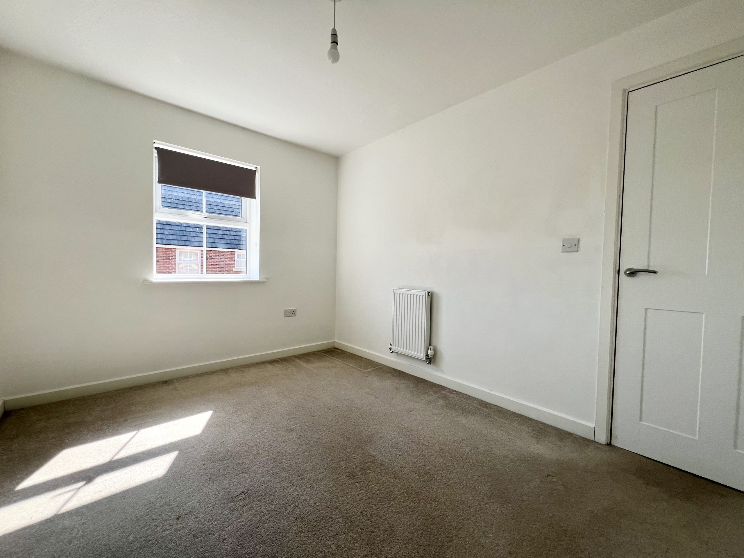 Bedroom two is positioned at the front of the property, this well-presented and proportioned bedroom benefits from fitted carpeting, a radiator, and a pendant light fitting. A front-facing window allows for good natural light, making the room ideally suited as a guest bedroom or for family use.
