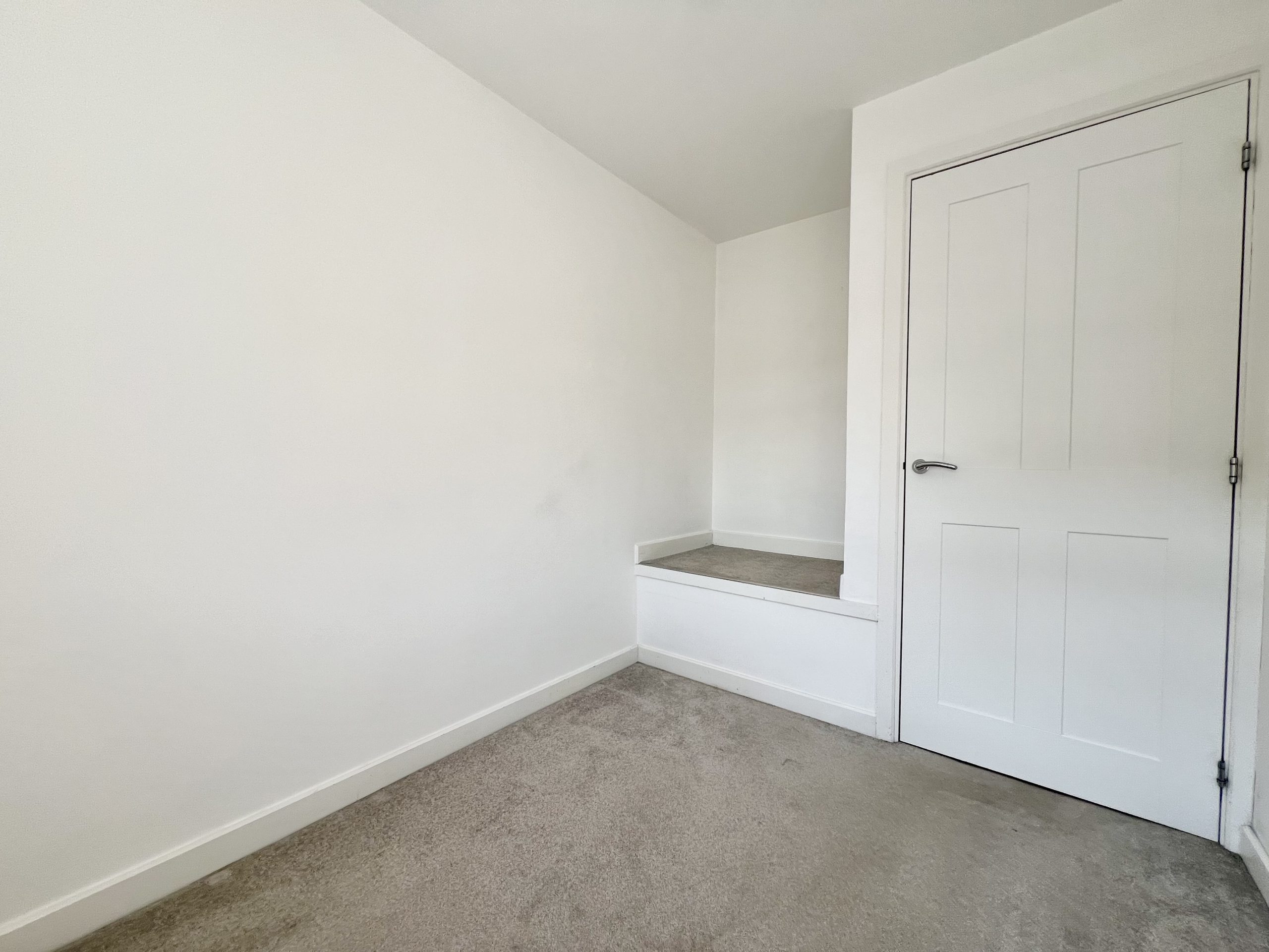 Bedroom Three is positioned at the front of the property, this well-proportioned bedroom is finished with fitted carpeting, a radiator, and a pendant light fitting. Its flexible layout makes it ideally suited for use as a child’s bedroom, home office, or dressing room.