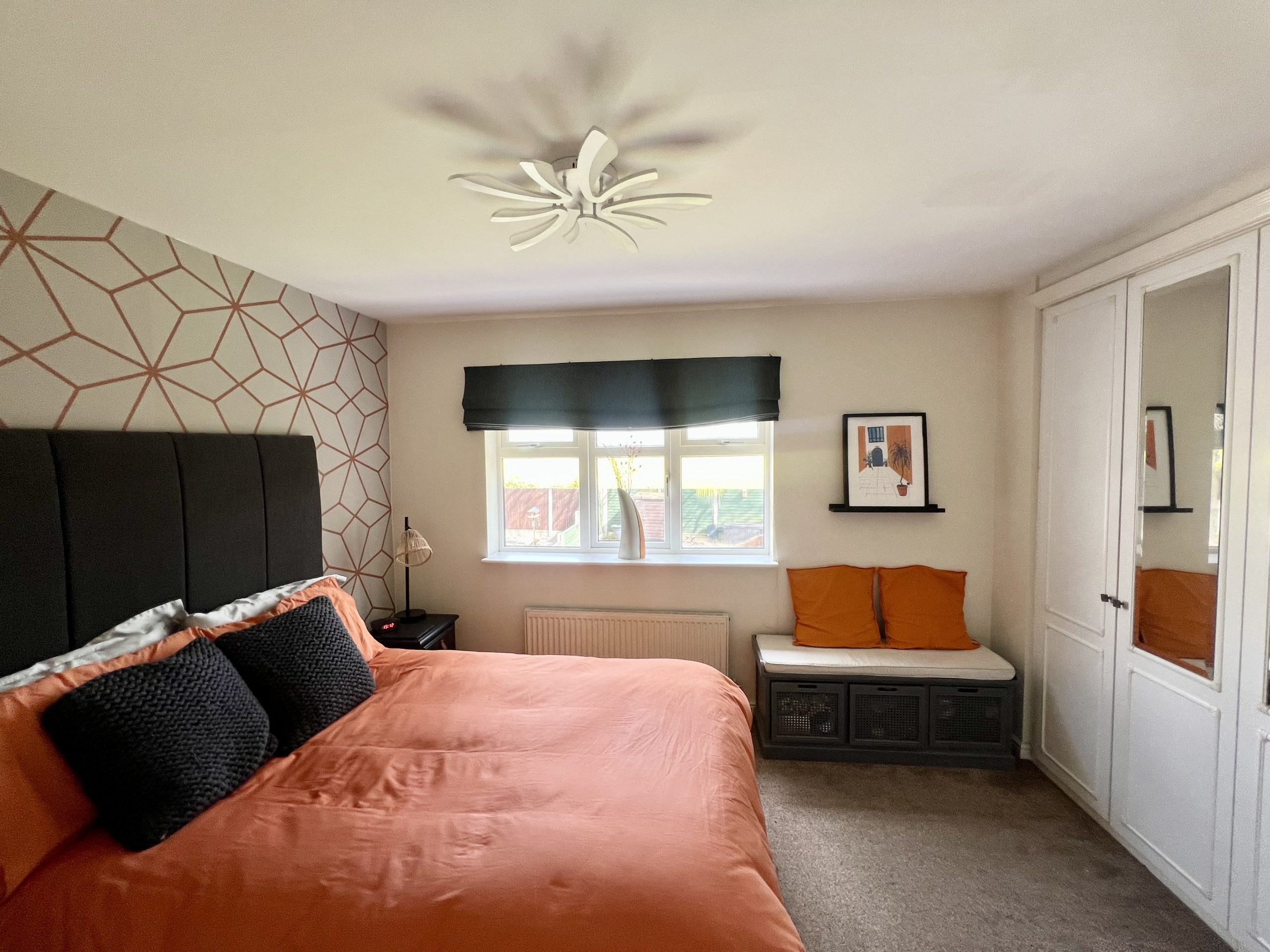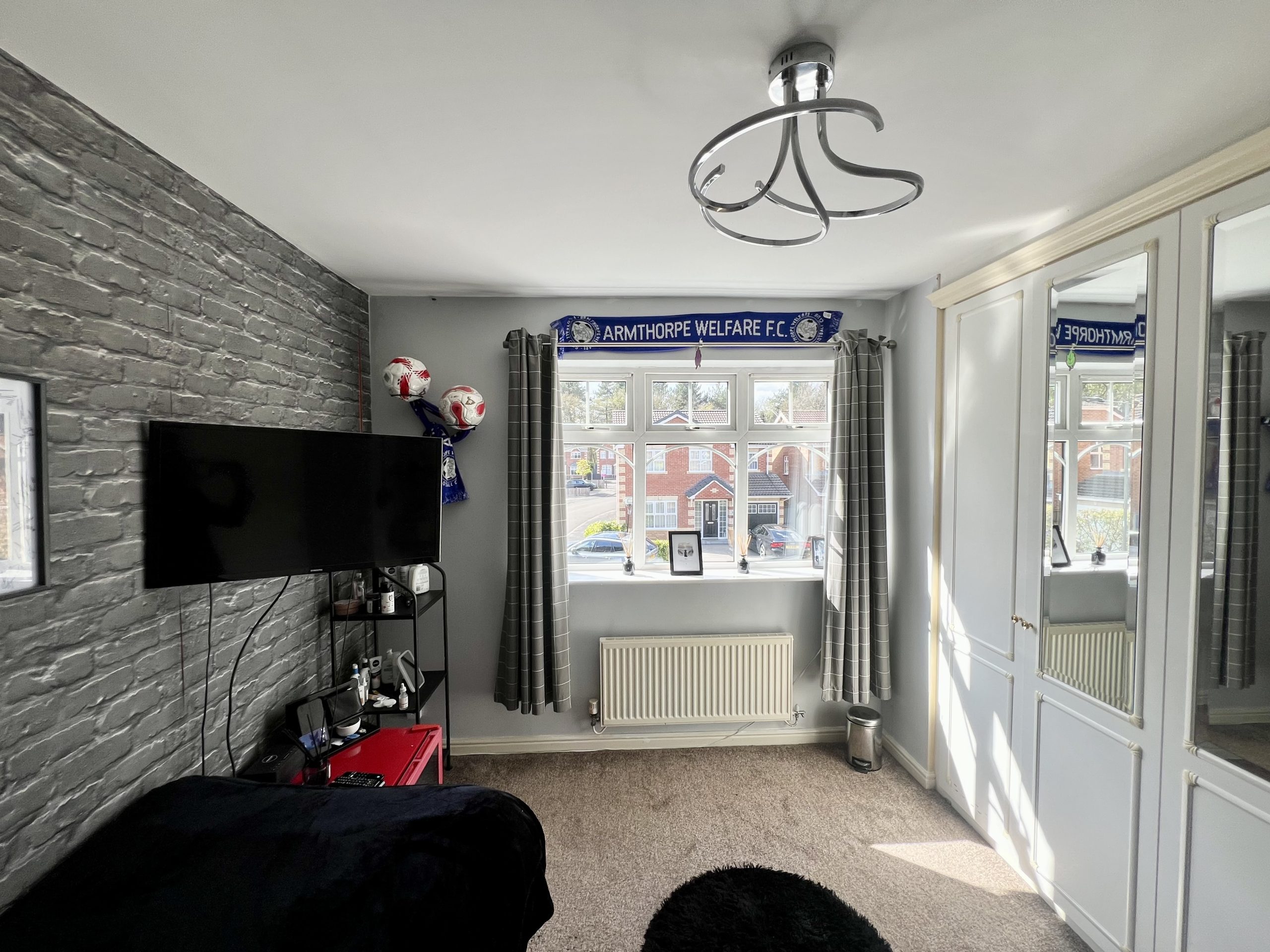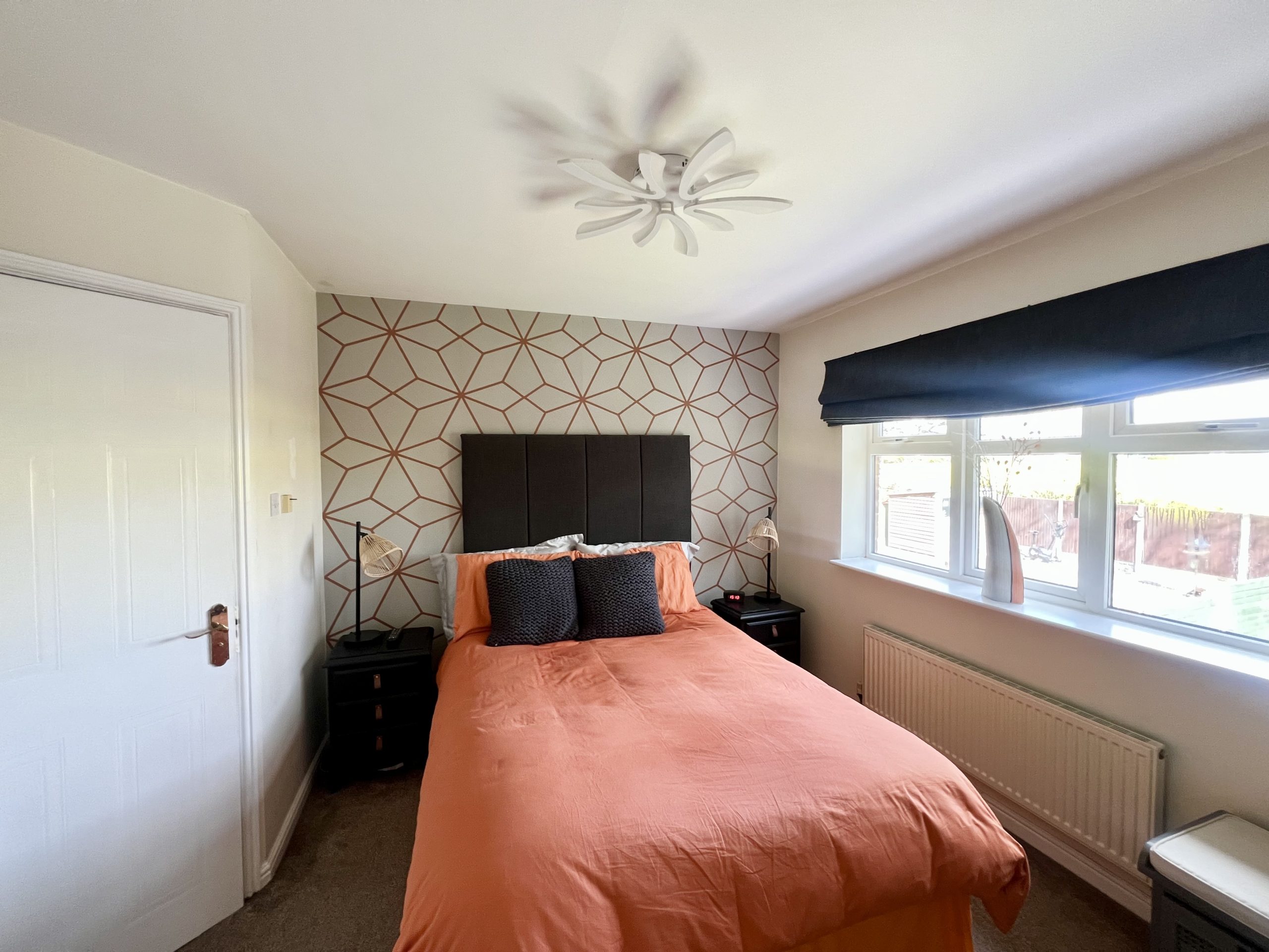 Bedroom Three is a well-proportioned double room, positioned to the front of the property. The room benefits from a front-facing window, carpeted flooring, a radiator, and a single pendant light fitting.