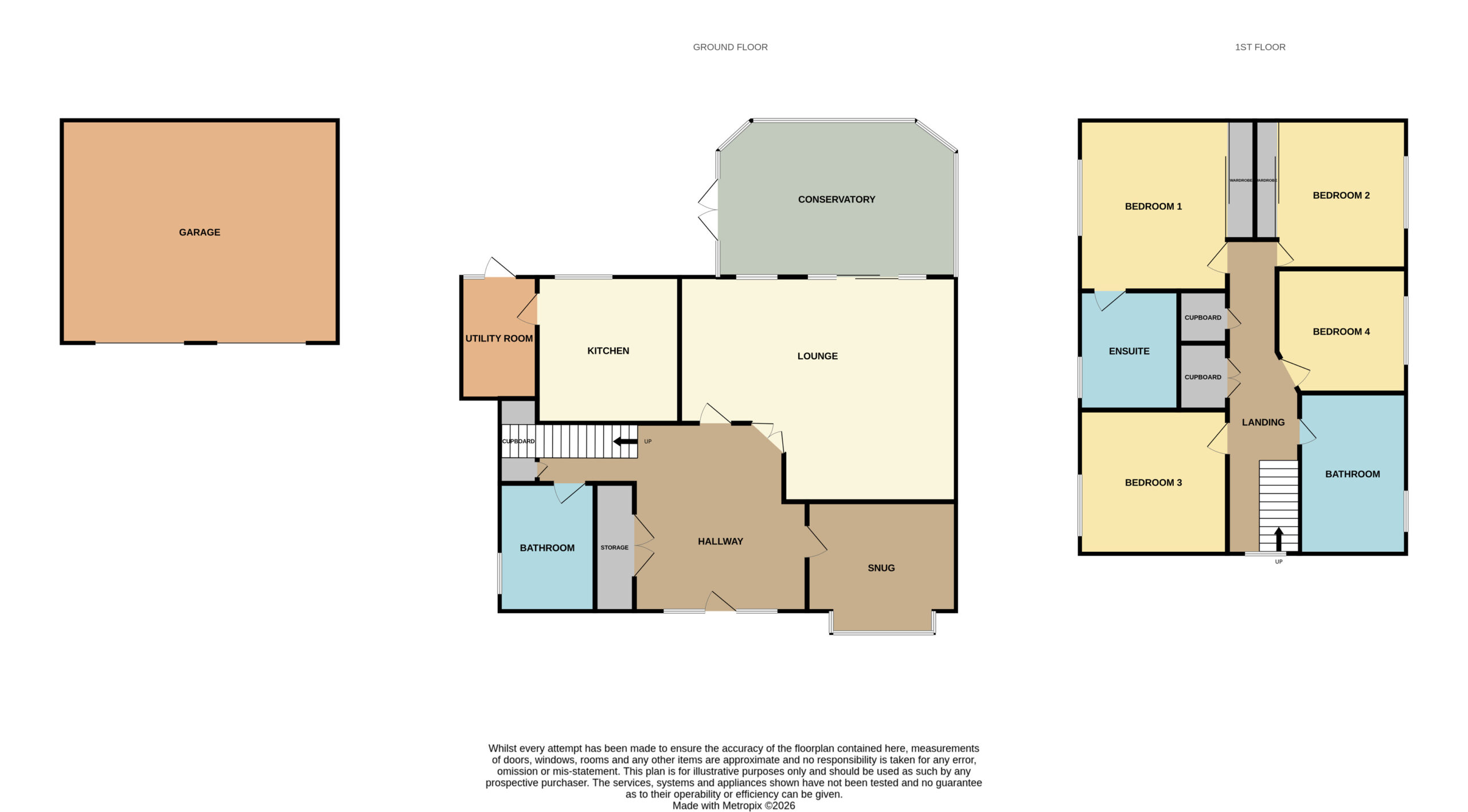 The accommodation briefly comprises: fully fitted kitchen with breakfast bar and integrated appliances, large lounge/dining room, spacious conservatory, further front facing reception room used as a snug, utility room, ground floor shower room, principal bedroom with ensuite and fitted wardrobes, three further double bedrooms, 2 of which have fitted wardrobes and a family bathroom with bath tub and walk in shower - creating the perfect family home.