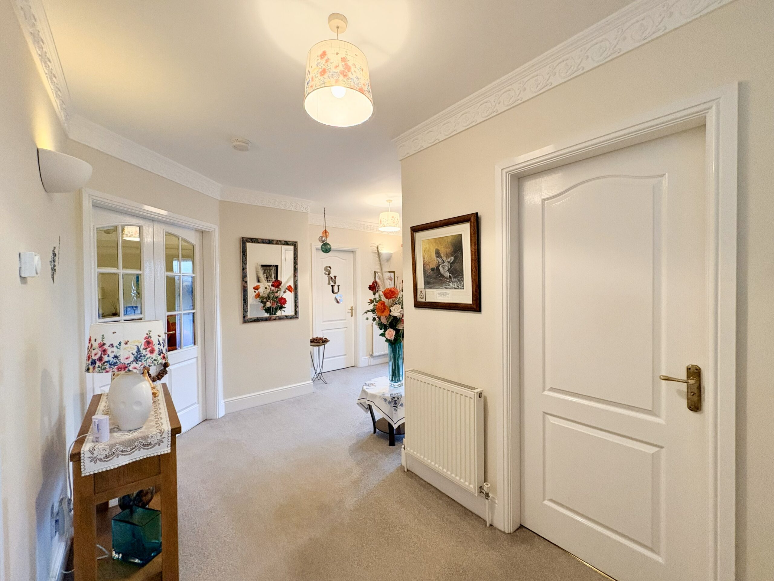 A grand and welcoming entrance hallway provides access to the ground floor accommodation. Featuring fitted carpet to floor, a large cloak cupboard which provides idea space for plenty of coats and shoes, a further under stair storage cupboard, three single pendant light fittings and two radiators.