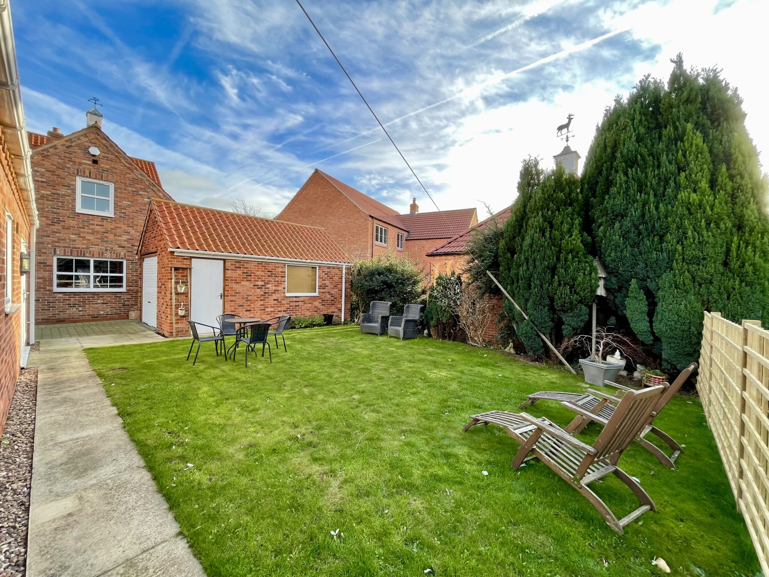 The front of the property has level paving which leads to the front door, grass lawn, access to the rear of the property and a block paved driveway provides parking for up to 3 cars. The south facing rear garden is mainly laid to lawn with shrub borders and small patio area. There is a side access pedestrian door to the detached garage which has an up and over door and benefits from power and lighting, workshop space and storage in the eaves.