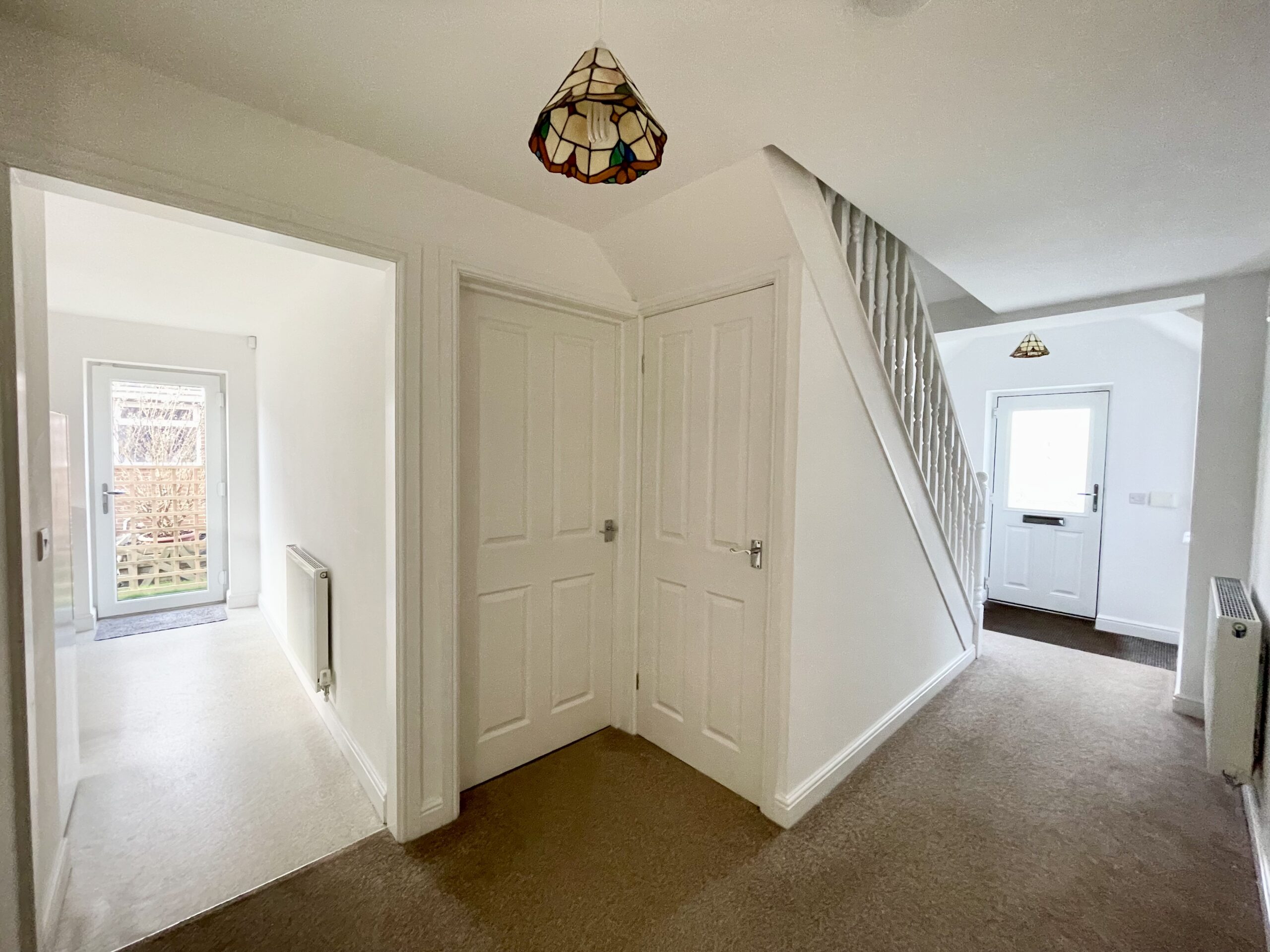 ACCOMMODATION A wide spacious hallway giving access to all ground floor rooms and stairs to first floor. Carpet to floor, radiator, 2 single pendant light fittings and under stair store cupboard with light and radiator, a perfect place to hang coats and store shoes etc.