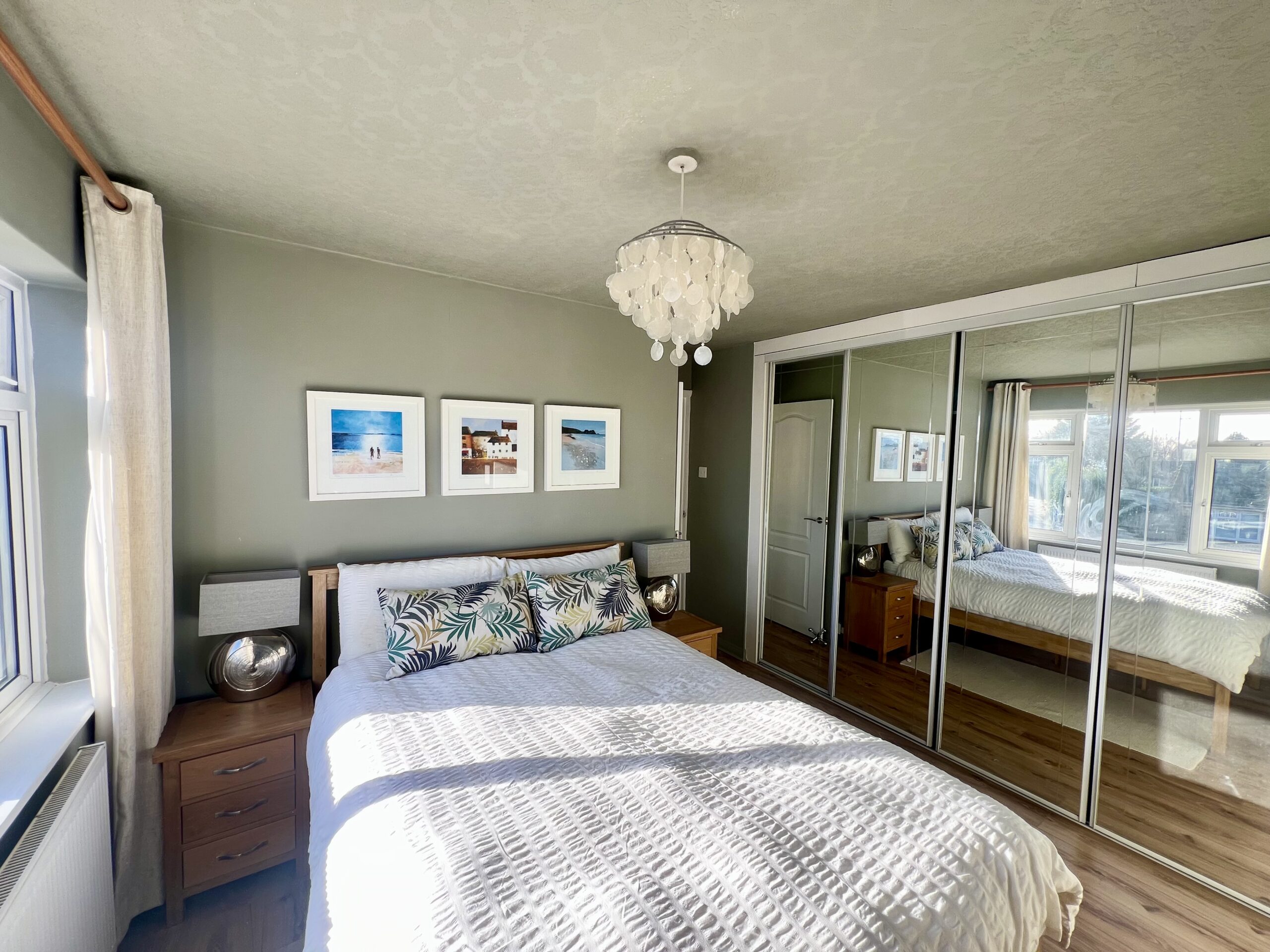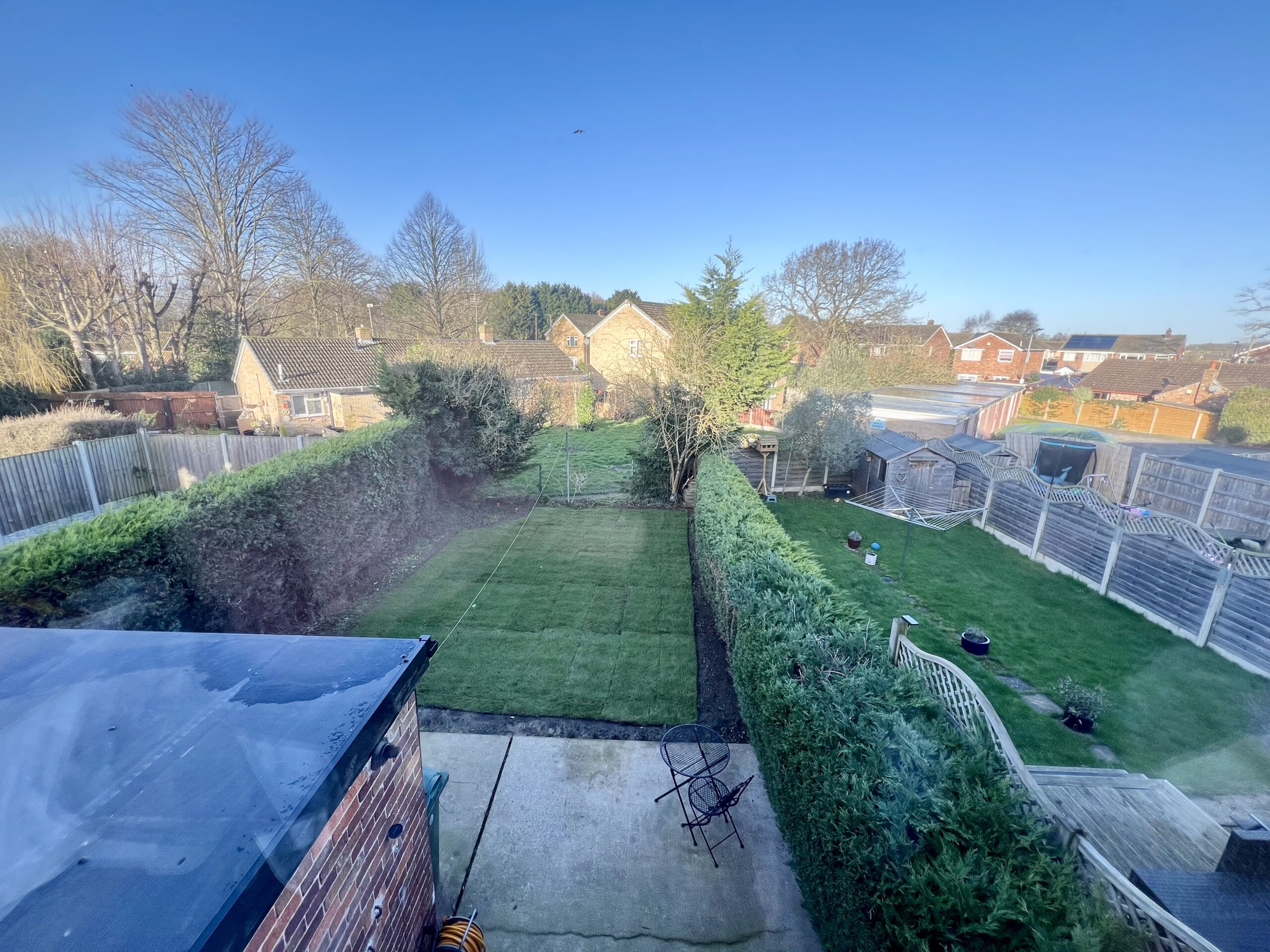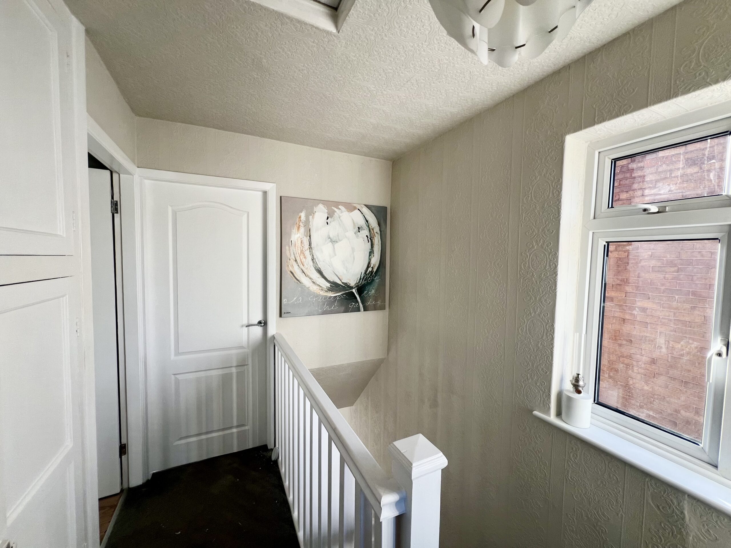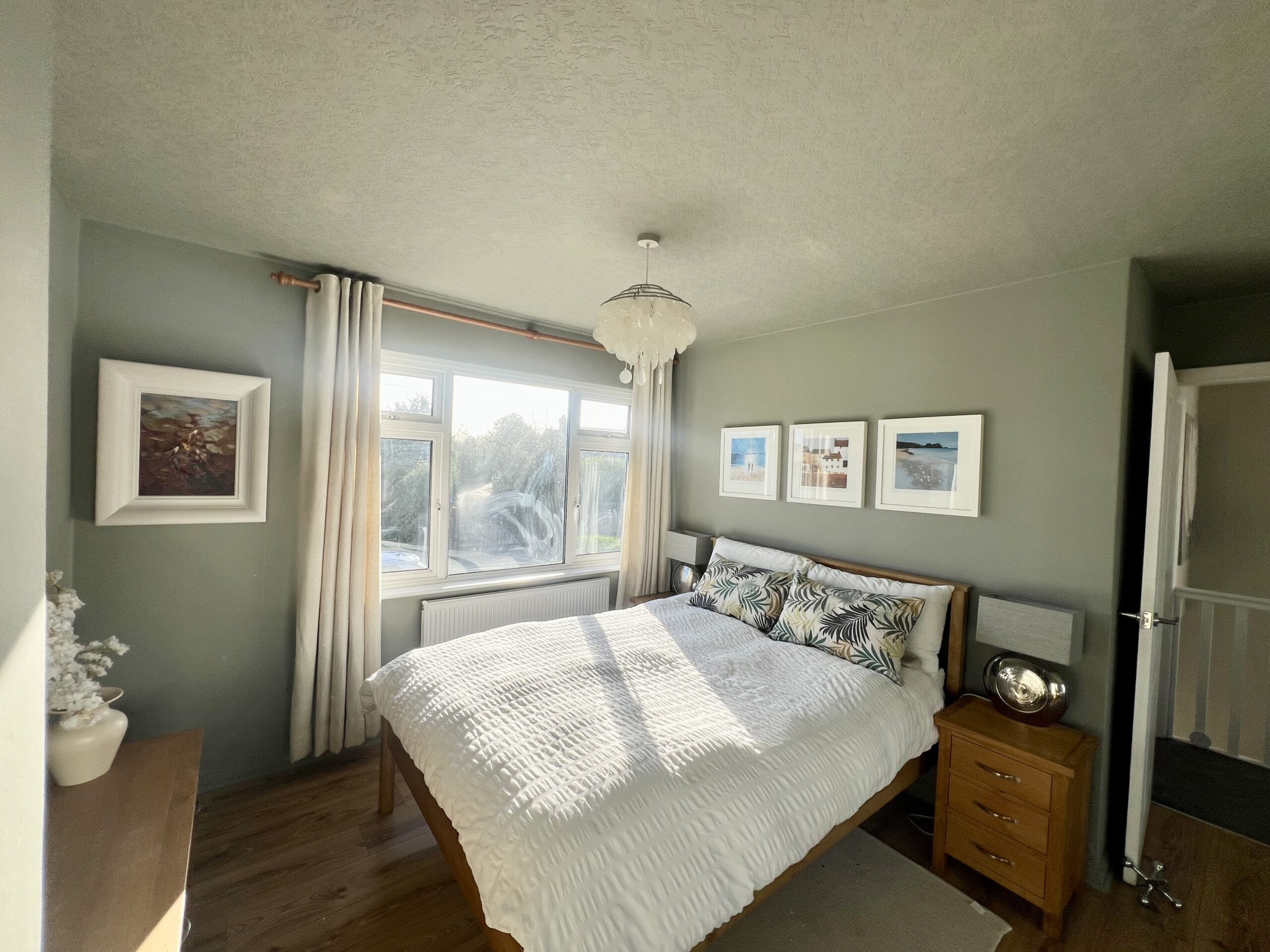 The principal bedroom is positioned at the front of the property and offers a bright and spacious retreat. Featuring a large front-facing window that allows plenty of natural light to pour in, the room is complemented by stylish wood-effect flooring, a radiator and a tasteful pendant light fitting. Fitted wardrobes provide excellent built-in storage, enhancing both practicality and the clean, streamlined finish of this well-presented bedroom. Bedroom two enjoys pleasant views over the rear garden and is a well-proportioned second bedroom, ideal for family members or guests. Finished with attractive wood-effect flooring and a radiator, the room also benefits from a handy storage cupboard, providing practical space while maintaining a comfortable and inviting feel. Bedroom three is positioned at the front of the property and is a versatile, well-sized room that can be used as a bedroom, home office or dressing room, as currently styled by the vendor. It features wood-effect flooring, a front-facing window allowing natural light, a radiator and a single pendant light fitting, creating a bright and adaptable space to suit a variety of needs.