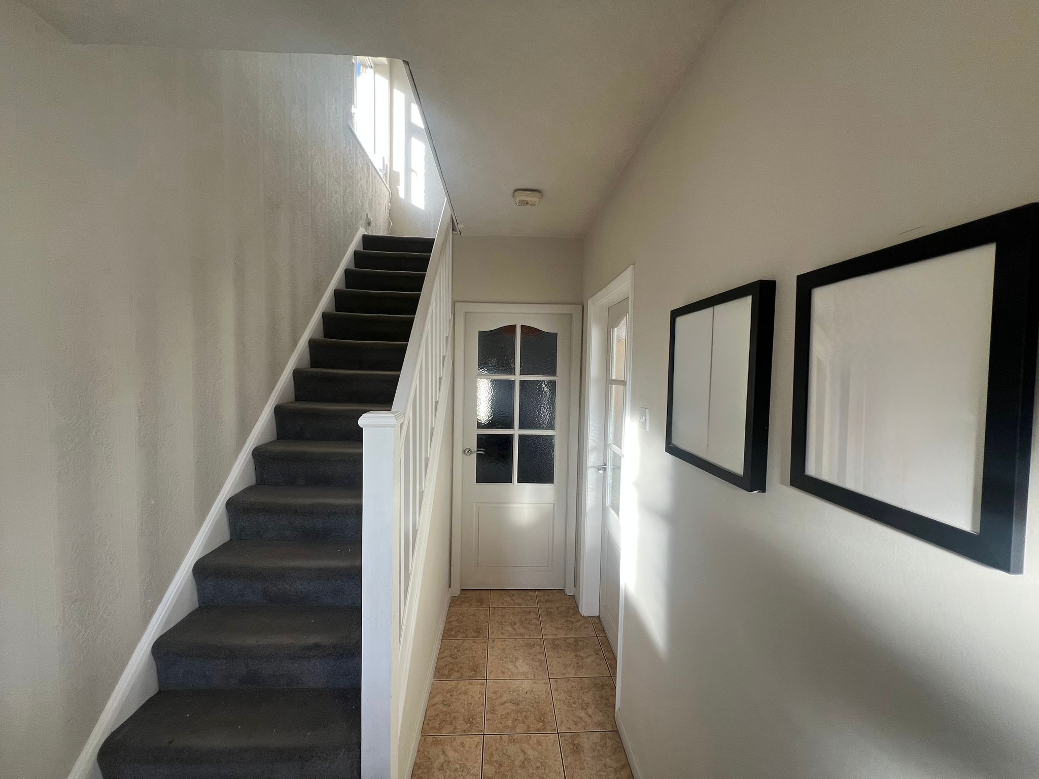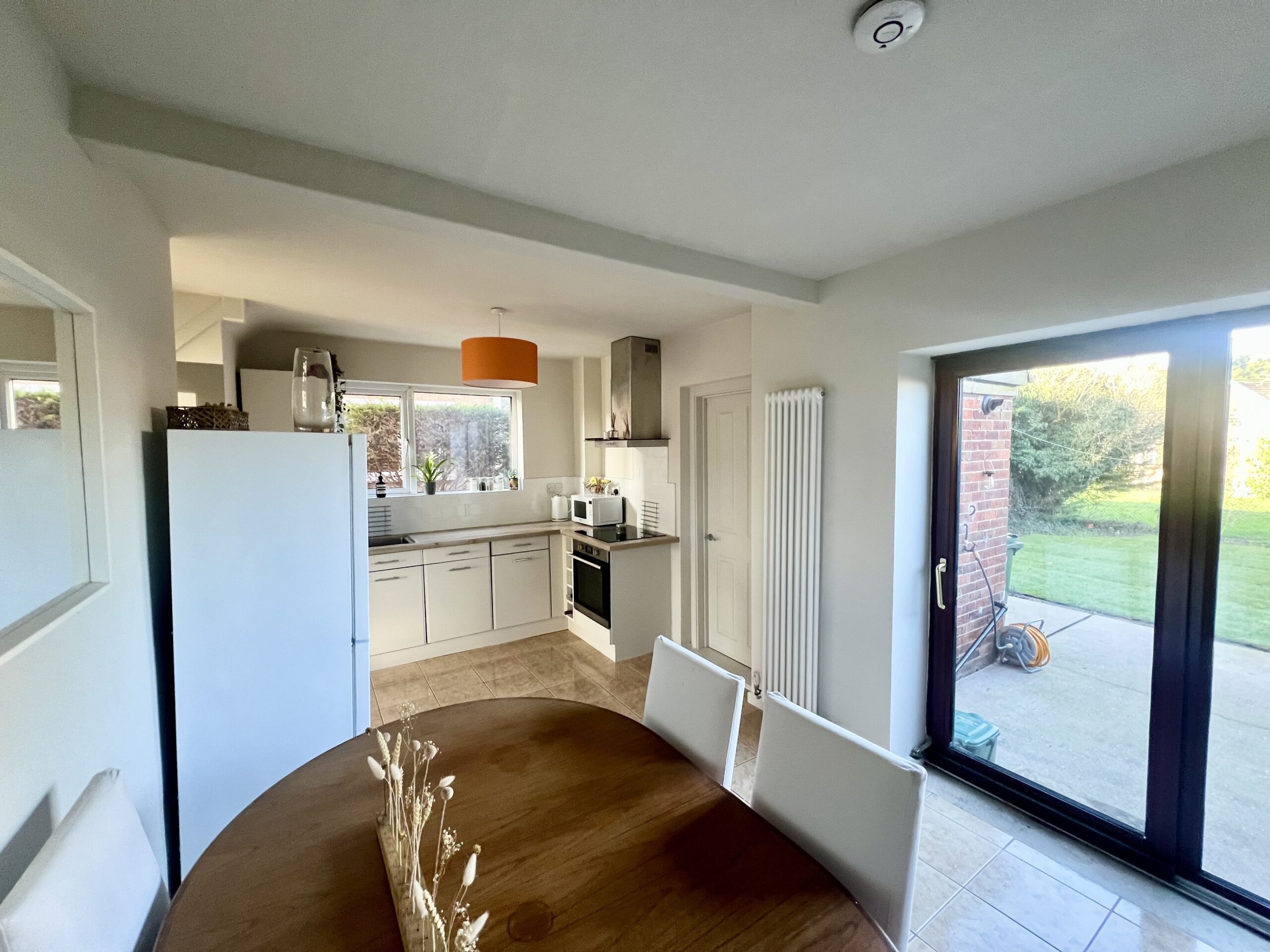 Upon entering the property, you are welcomed into a bright and inviting hallway that immediately sets the tone for the home. Beautifully finished with stylish tiled flooring and enhanced by a side aspect window that floods the space with natural light, this area offers access to the lounge, kitchen/diner and first floor accommodation. A tasteful pendant light fitting and radiator complete the space, creating a warm and welcoming first impression. The lounge is positioned at the front of the property and benefits from a large front-facing window that fills the room with natural light. Finished with attractive wood-effect flooring, a radiator and a single pendant light fitting, this beautifully presented space offers a warm and cosy atmosphere, making it the perfect setting to unwind and relax in the evening. Situated to the rear of the property, the kitchen/diner is a fantastic open and functional space, perfect for modern family living and entertaining. It features a range of wall and floor cabinets offering ample storage, along with an integrated oven and hob. The stylish tiled flooring flows seamlessly through from the hallway, enhancing the sense of space and continuity. A side window and patio doors allow plenty of natural light to flood the room while providing direct access to the patio area and private rear garden, creating an ideal indoor-outdoor connection. A useful pantry caters to all your storage needs, while two pendant light fittings and a radiator complete this well-appointed and welcoming space. Accessed from the kitchen/diner is a practical utility area, providing plumbing for a washing machine and housing the recently installed combi boiler, which is serviced annually for peace of mind. This useful space also benefits from a handy storage cupboard, vinyl flooring for easy maintenance, a rear-facing window allowing natural light, and a side door offering convenient access to the rear garden.
