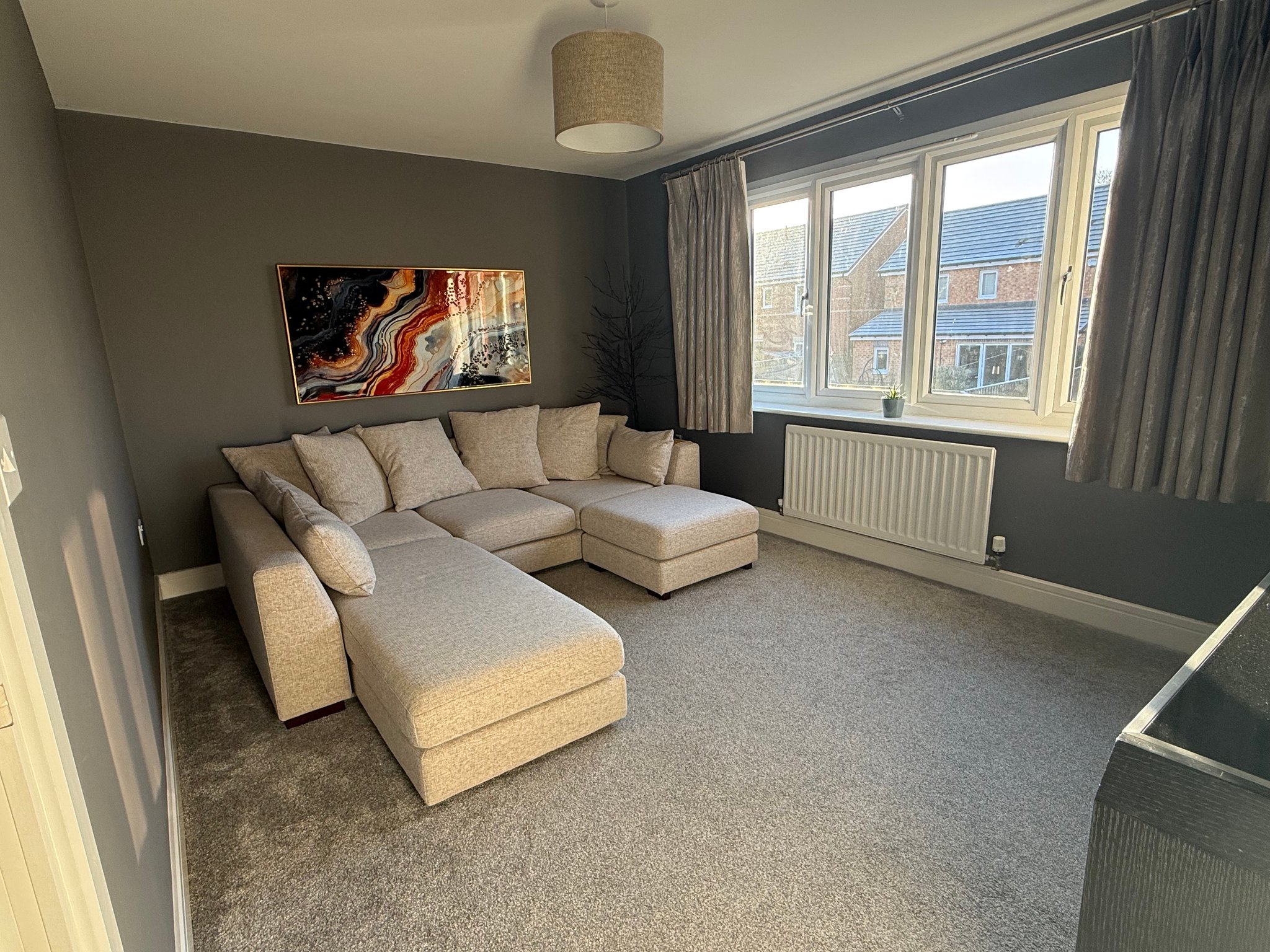 The beautiful lounge/Bedroom Two is positioned at the rear of the property and enjoys a larger-than-average window overlooking the garden, allowing an abundance of natural light to fill the room. This stunning and highly versatile space is currently styled as a cosy lounge, perfect for relaxing, yet could effortlessly be transformed into an additional bedroom to suit a growing family or guests. Finished with a single pendant light fitting, soft carpeted flooring and a radiator, the room offers both comfort and flexibility in a calm, inviting setting.