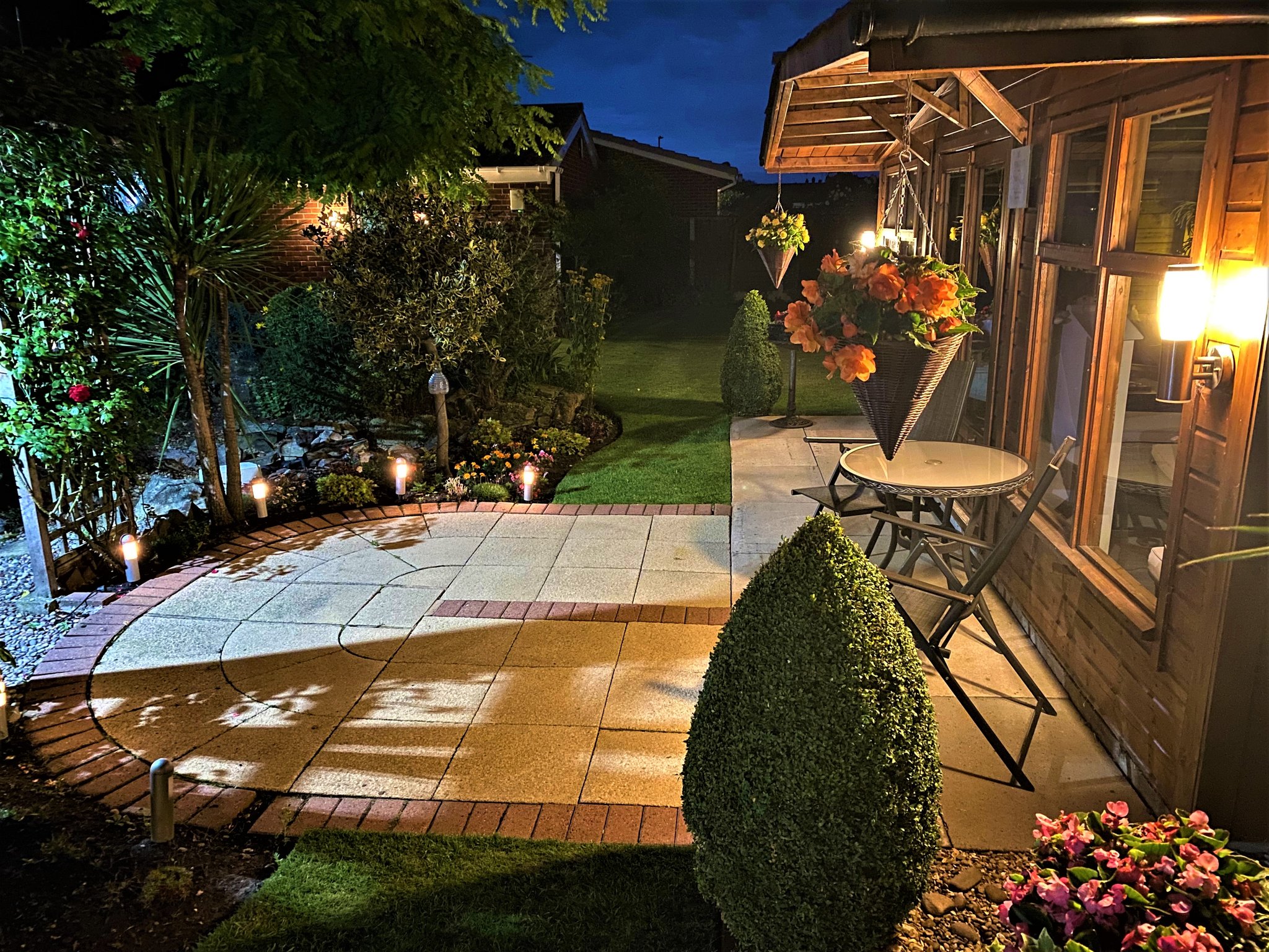 There is pedestrian access from the garden into the double garage, along with a tall, secure resin gate leading to the double driveway. Two patio areas provide excellent outdoor seating options throughout the day, whether relaxing in the sun or entertaining. To one side of the property is a storage shed, and gated access leads securely to the front garden.