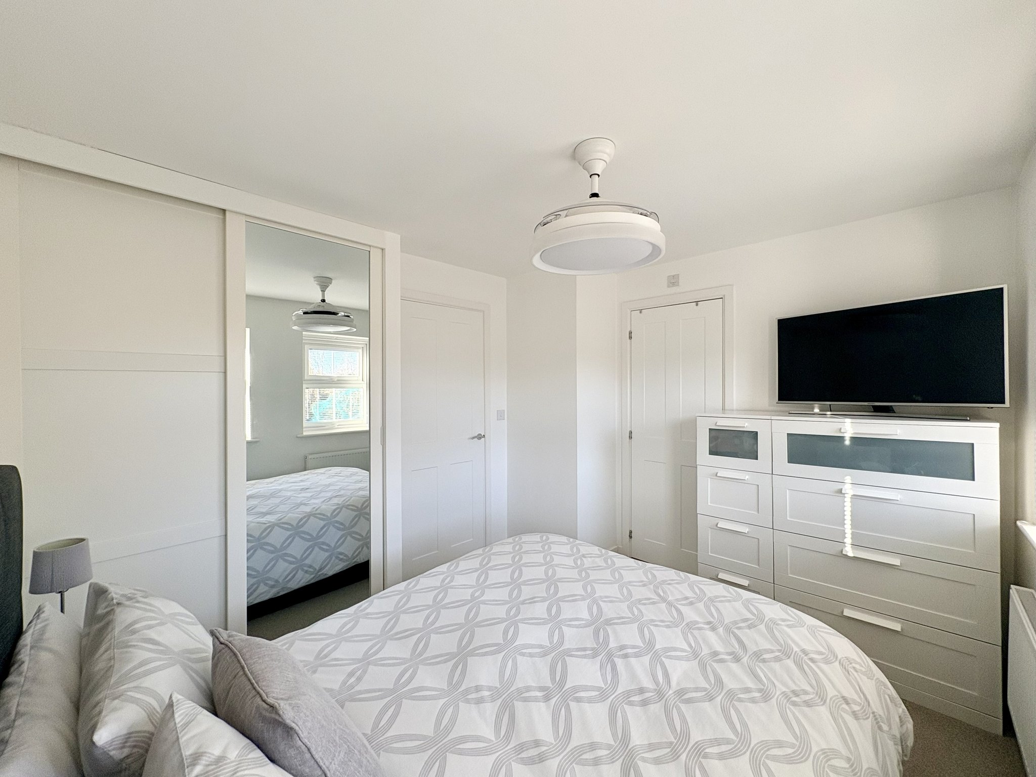 The principal bedroom overlooks the rear of the property and features fitted wardrobes, carpeted flooring, a radiator and pendant lighting. The ensuite shower room is part tiled and includes a walk-in shower, wash basin, WC, heated towel rail and vinyl flooring.