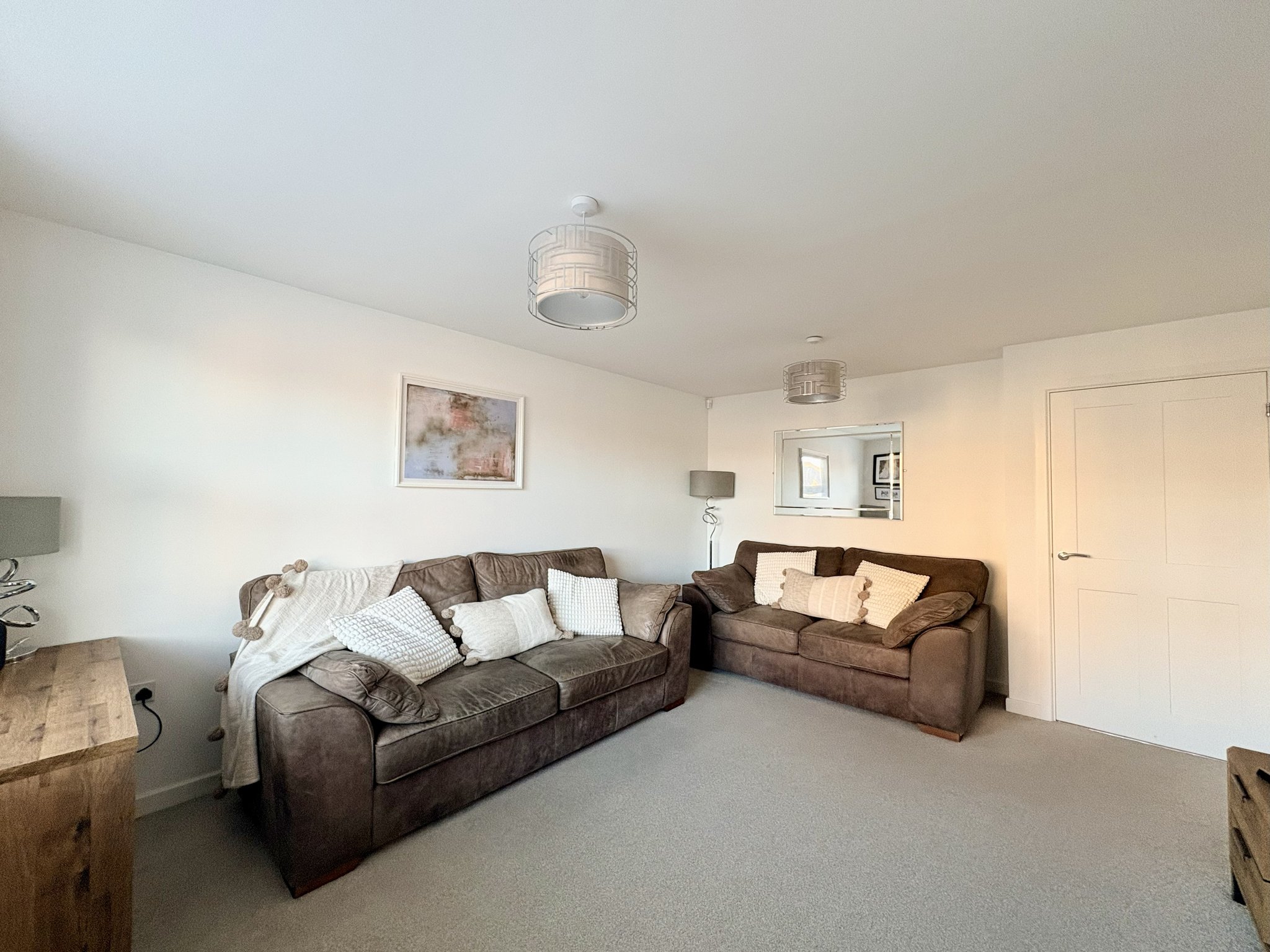 The lounge is a light and inviting room with a front-facing window, carpeted flooring, a useful storage cupboard, radiator and pendant light fitting. A door leads through to an inner hallway, which has carpeted flooring, a further pendant light fitting and provides access to the kitchen/diner and stairs to the first floor.