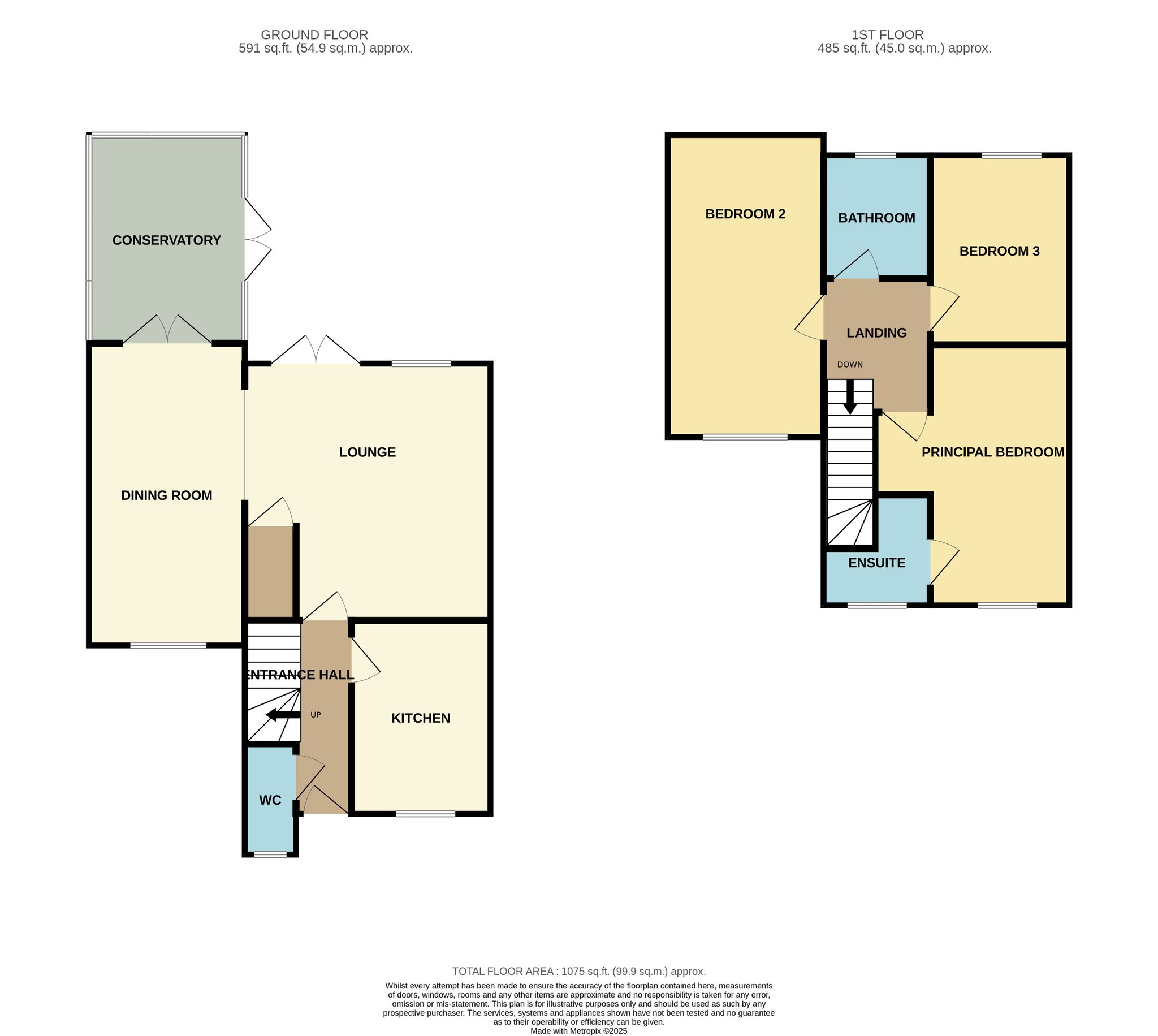Bedroom One (Principal Suite) A generous double bedroom with fitted carpet, radiator, and single pendant light fitting. Access to: En Suite Shower Room Beautifully appointed with modern white sanitary ware, contemporary tiling, chrome ladder radiator, recessed spotlights, vinyl flooring, and extractor fan.