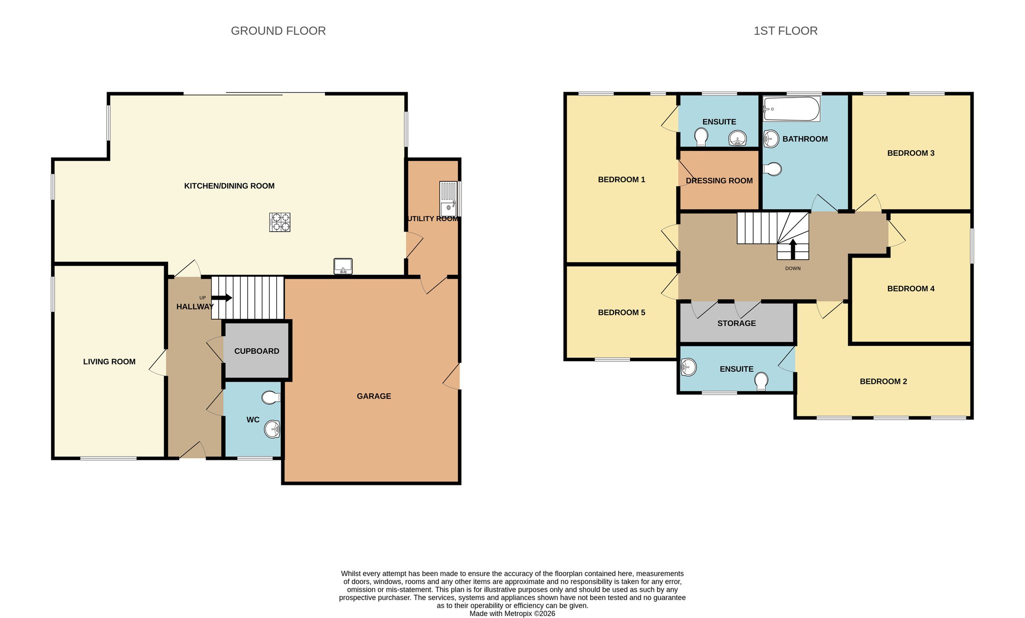 The spacious landing provides access to the principal bedroom, four further double bedrooms, and the modern family bathroom. It is well-lit with recessed spotlights throughout and features plush fitted carpet, adding warmth and comfort to the upper floor. The landing also continues the sense of space and quality that flows throughout the home.