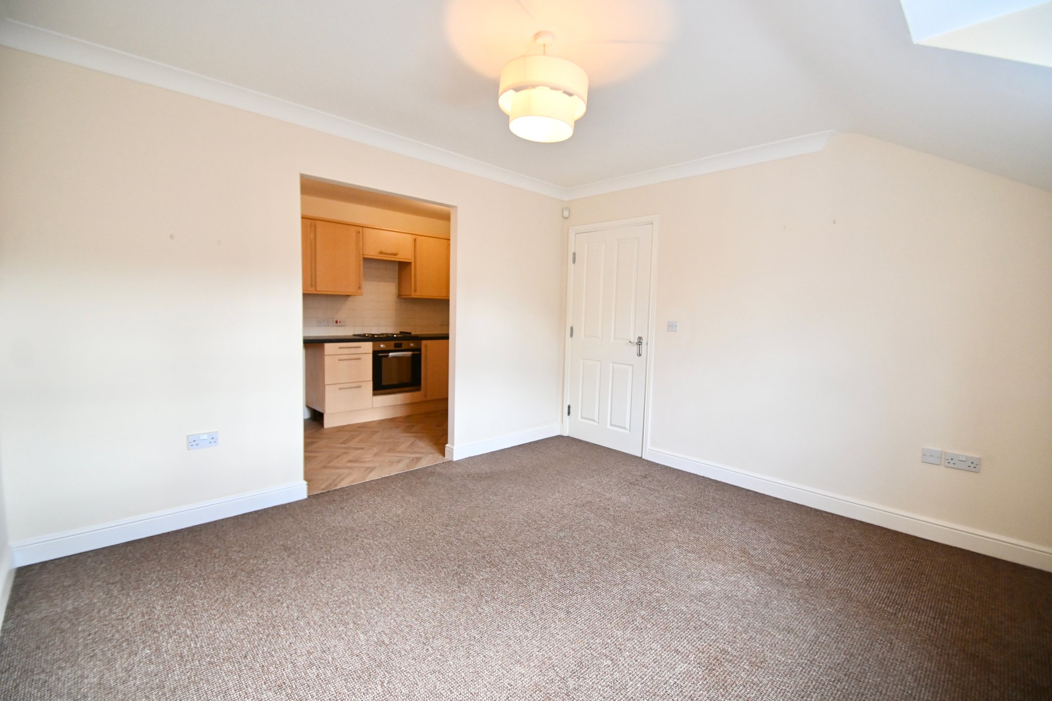 Lounge is open plan with front aspect window, carpet to floor, single pendant light fitting and radiator.
