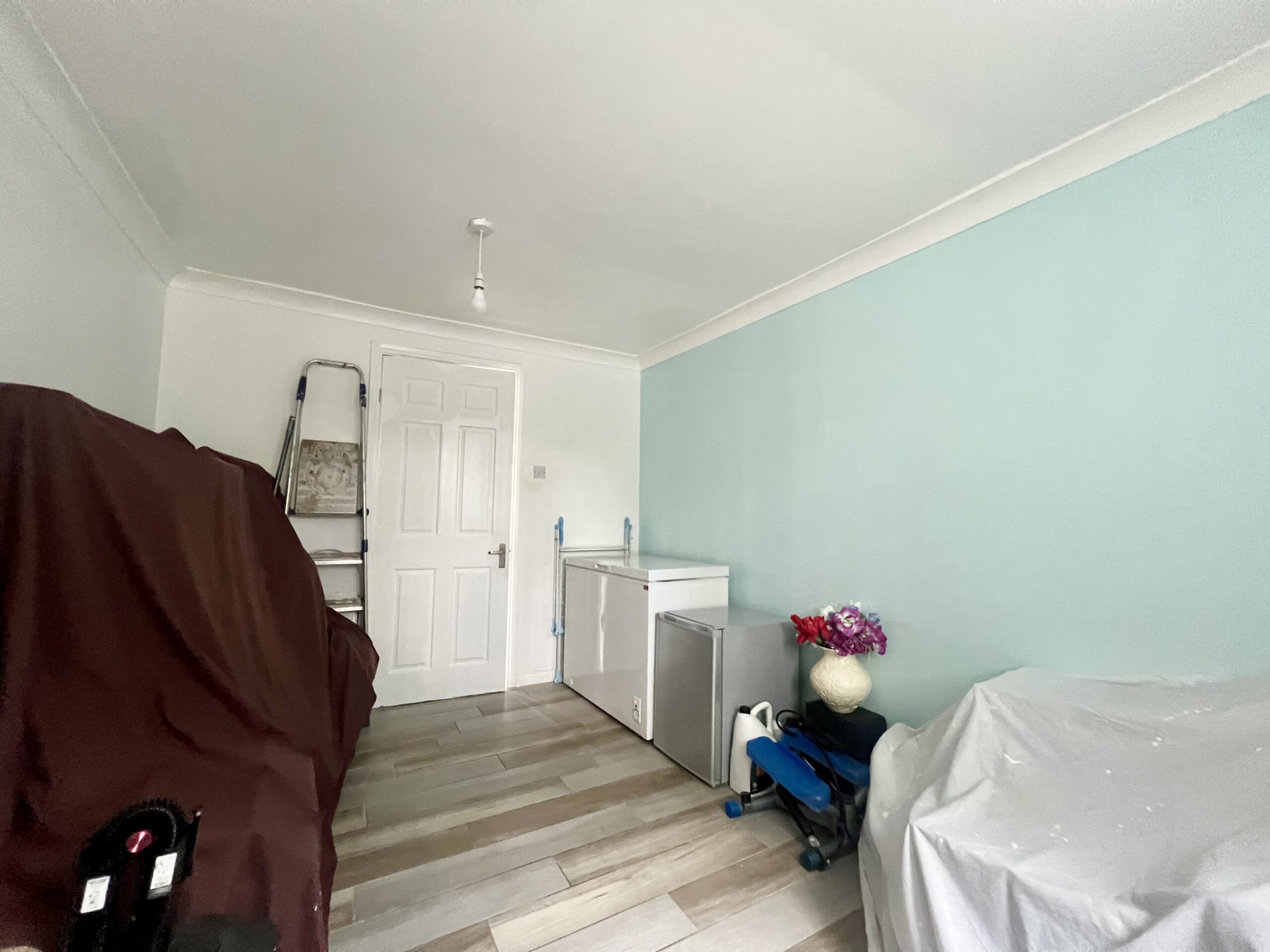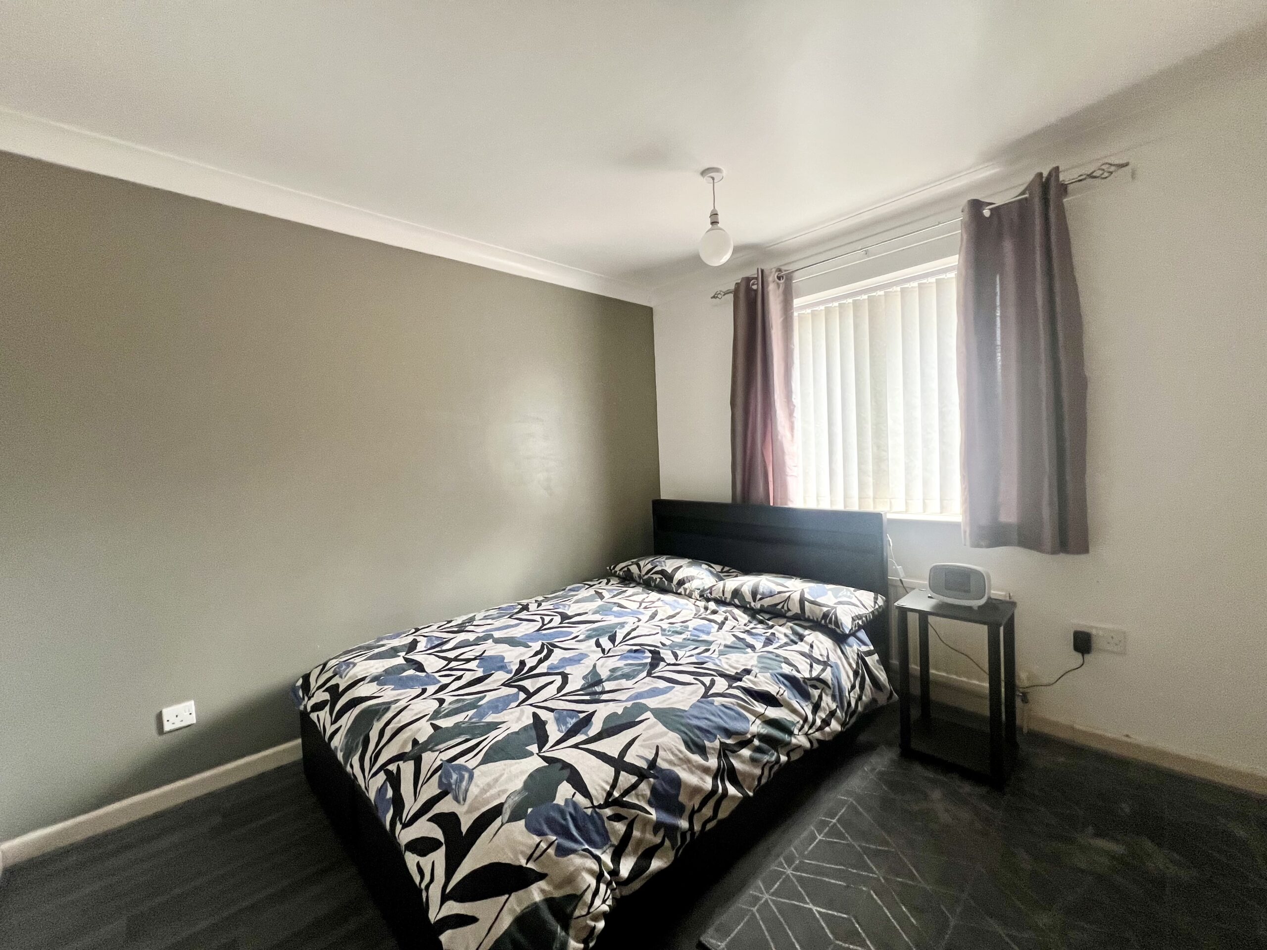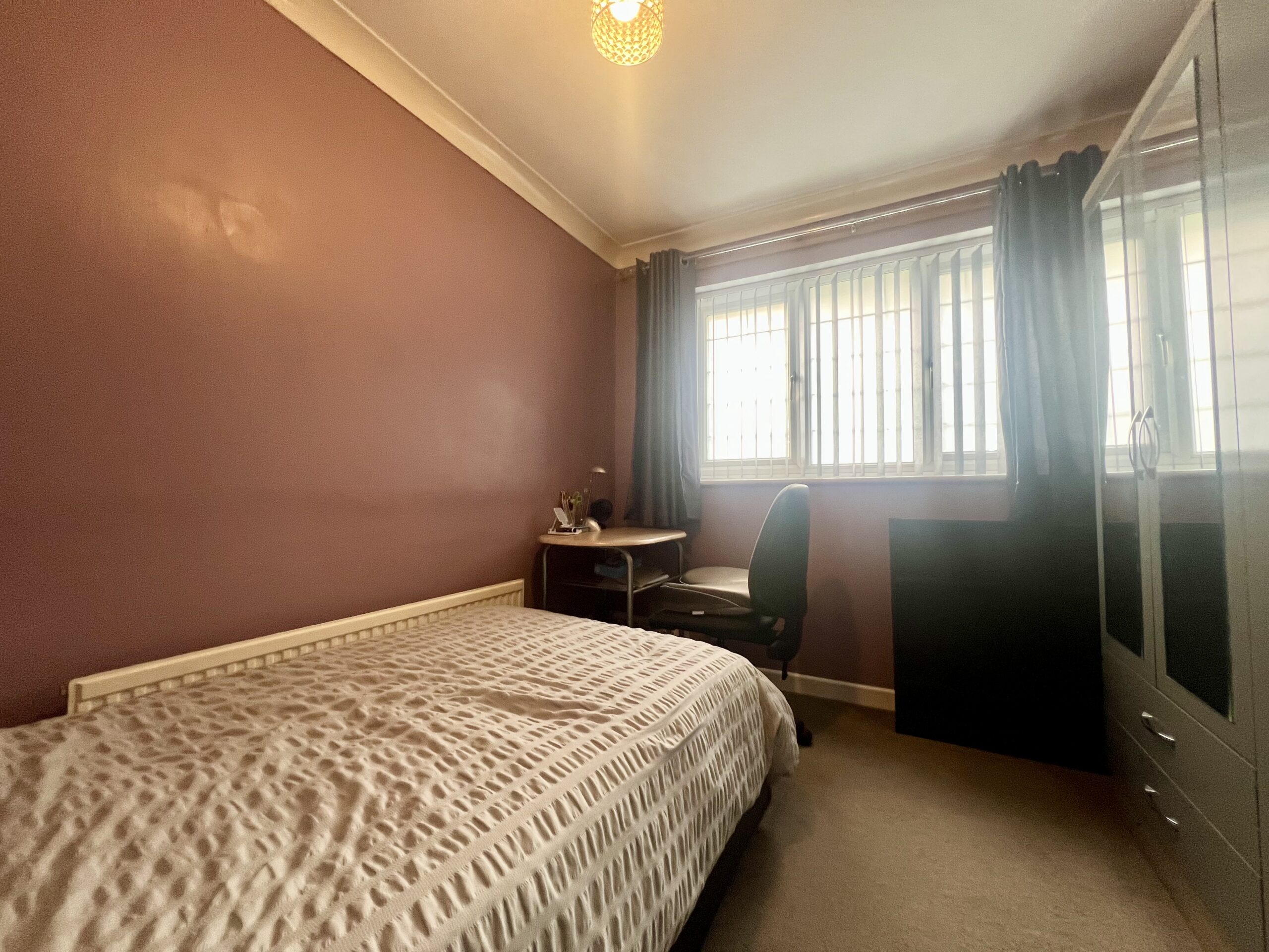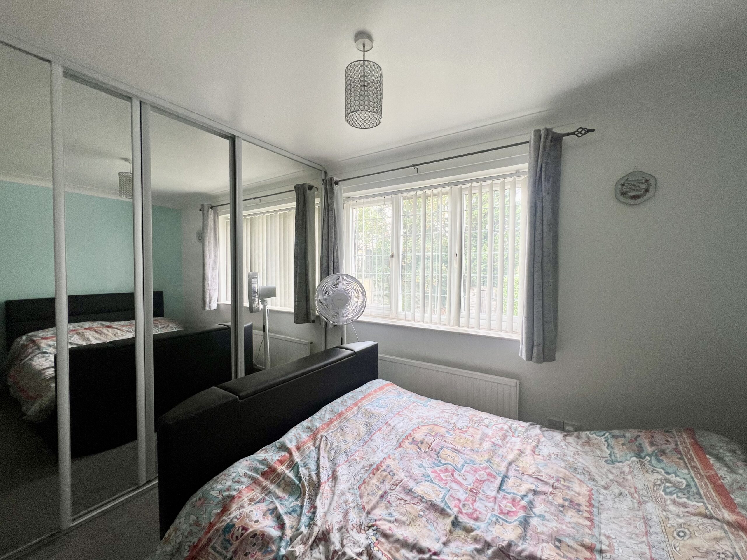 Bedroom two is situated at the rear of the property and features wooden flooring, fitted wardrobes, and a single pendant light fitting, offering a comfortable and practical space.