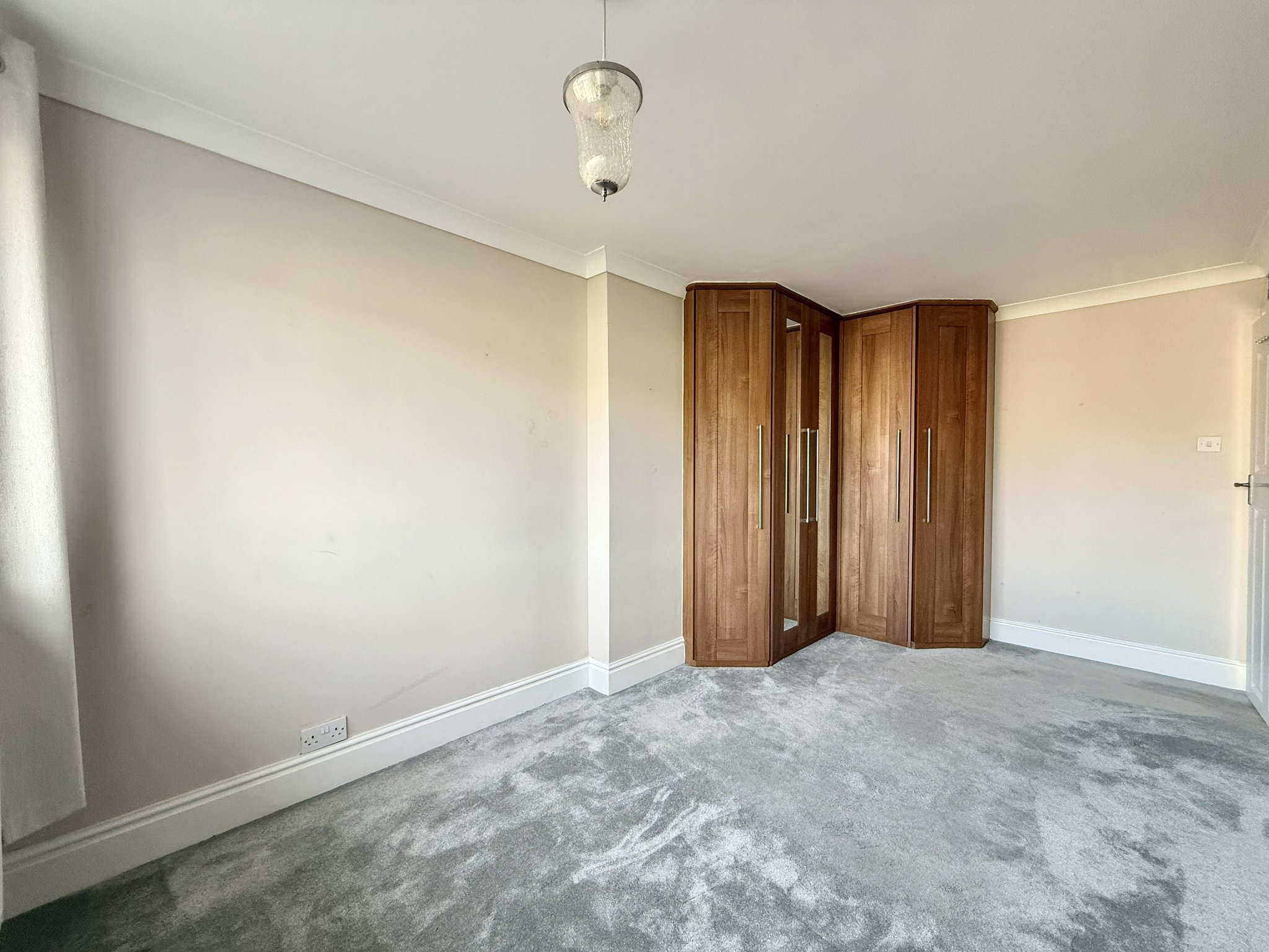 The principal bedroom is positioned to the front of the property and benefits from fitted wardrobes, carpeted flooring, a radiator and a front-facing window.