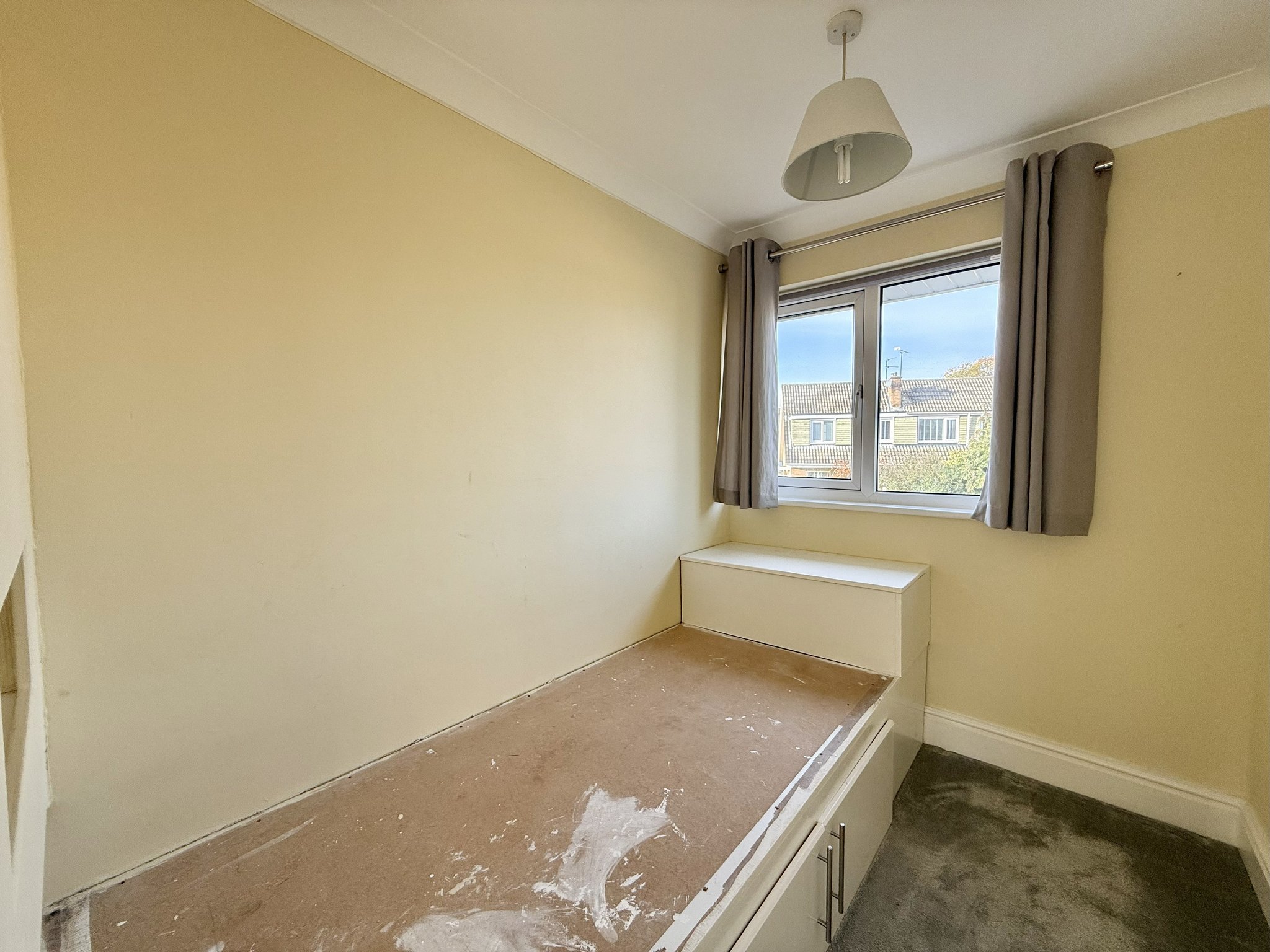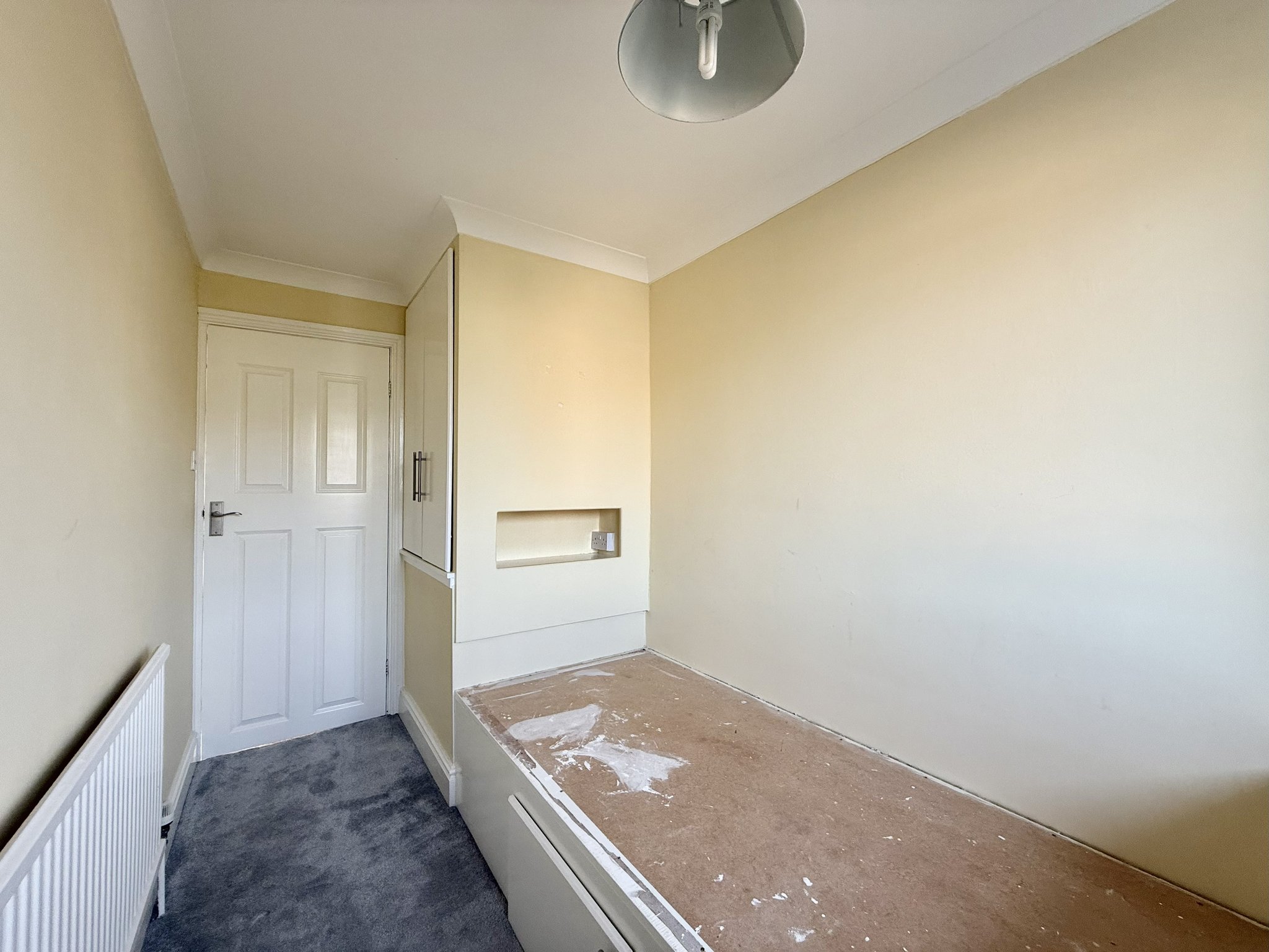 Bedroom two is a well-proportioned double bedroom, ideal for children or guests. Bedroom three is a single bedroom, perfect as a child’s room, nursery or home office, and includes a fixed bed and built-in storage cupboard. Both rooms have carpet to floor, single pendant ight fitting and radiator.