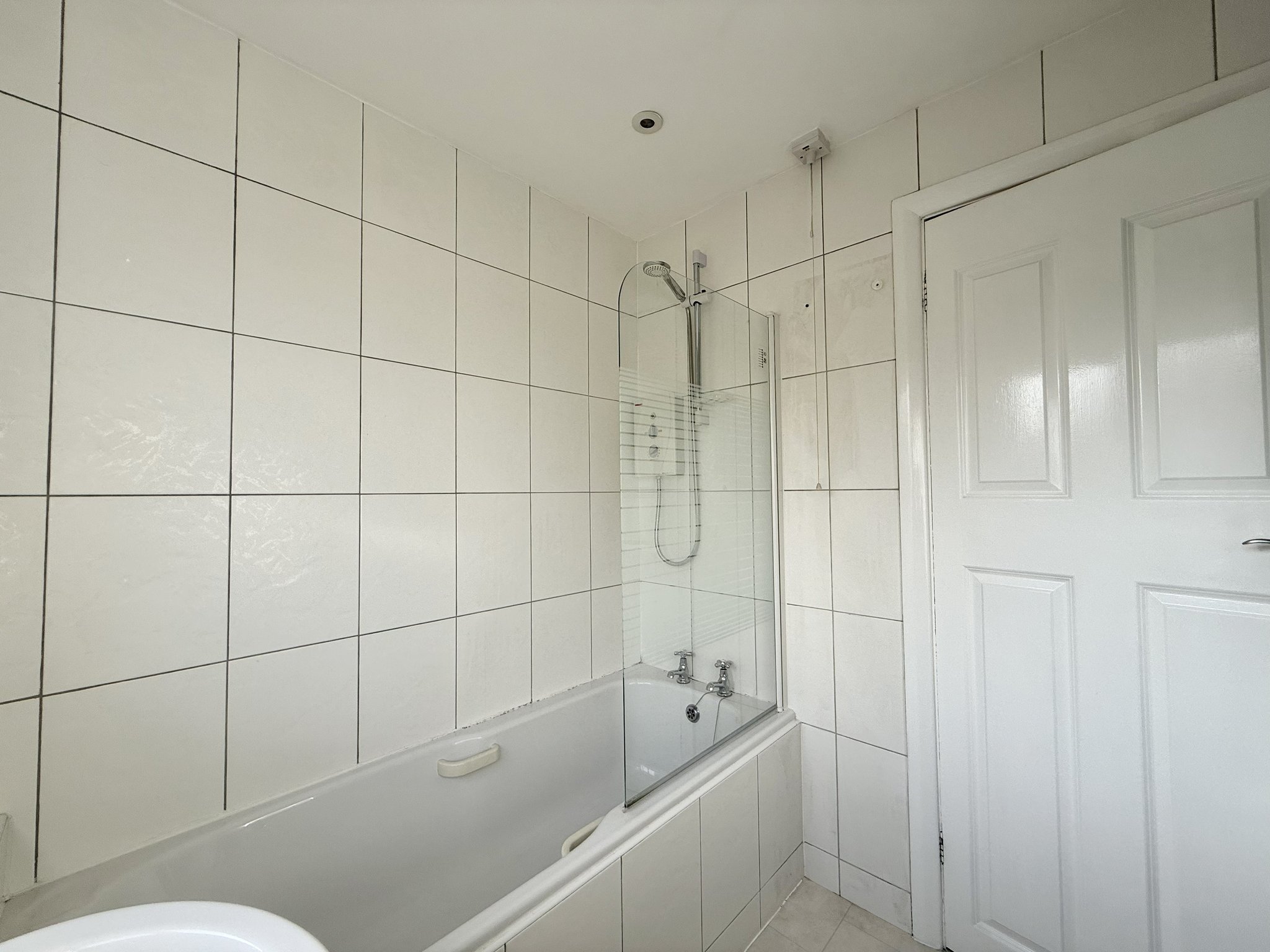 The family bathroom is fitted with a WC, wash hand basin and a panelled bath with shower over. Finished with part-tiled walls, tiled flooring, spot lighting and a rear-aspect obscure glazed window.
