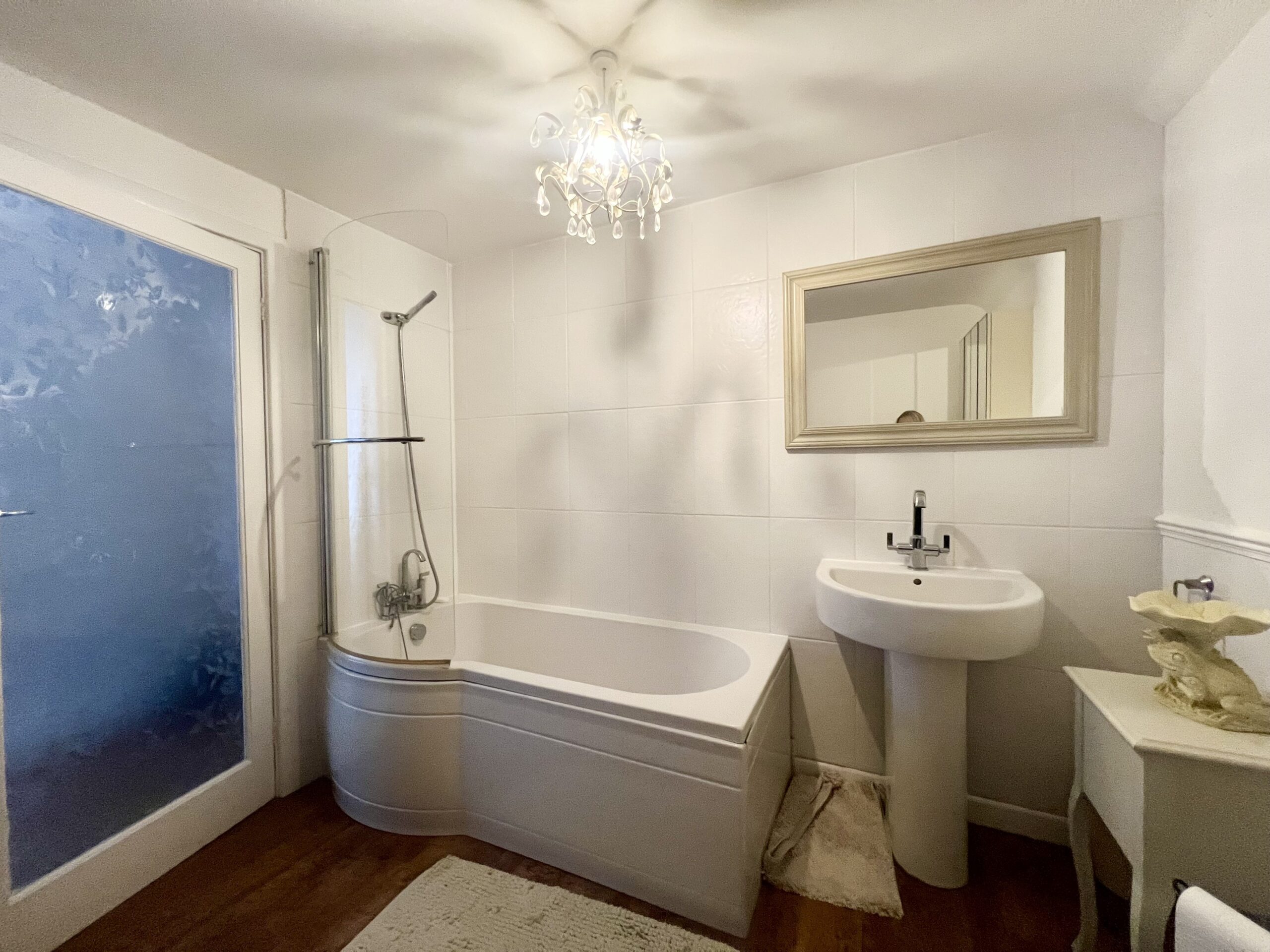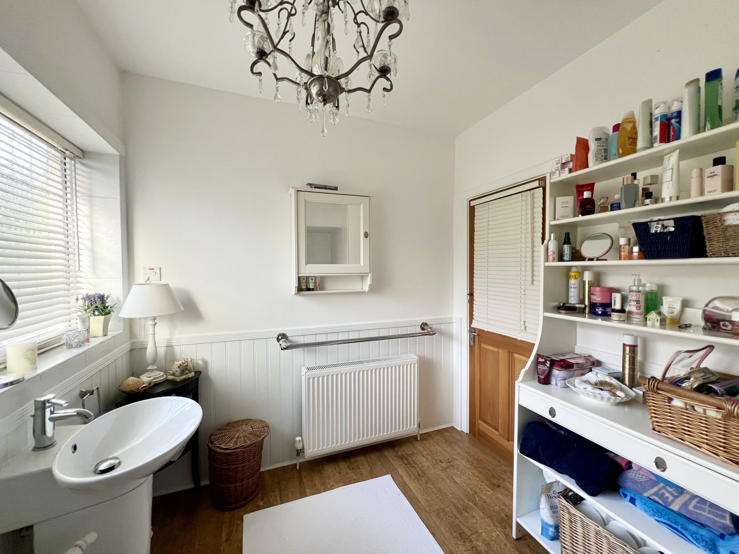 A modern, rear aspect, fully fitted bathroom serves these rooms and is conveniently located on this level. Part tiled with bath tub, hand basin and WC.